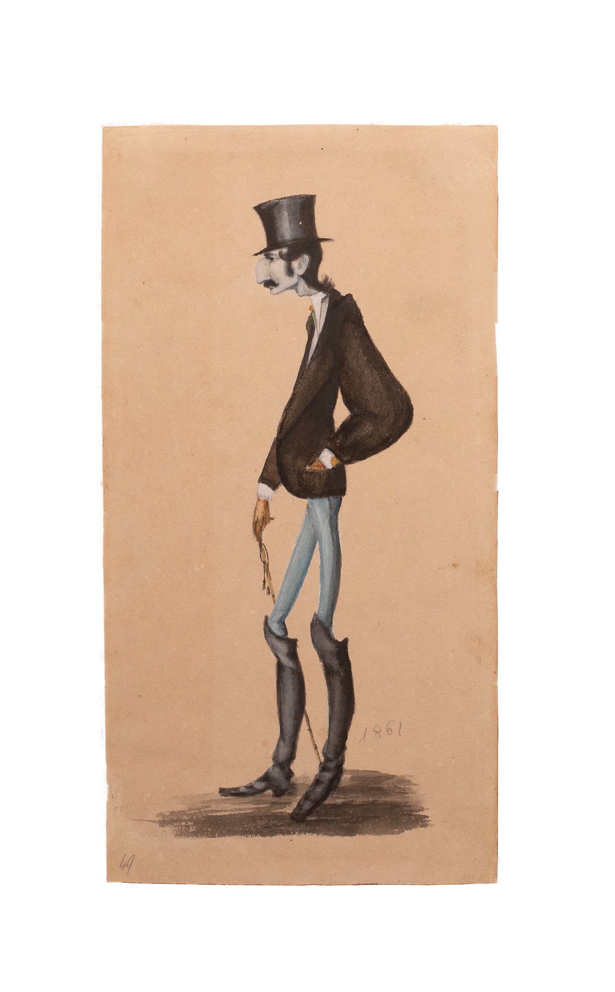 (Italia, 1825 - Regno Unito, 1895) - Bellissima caricatura di uomo con naso adunco e stivali, datata 1861.