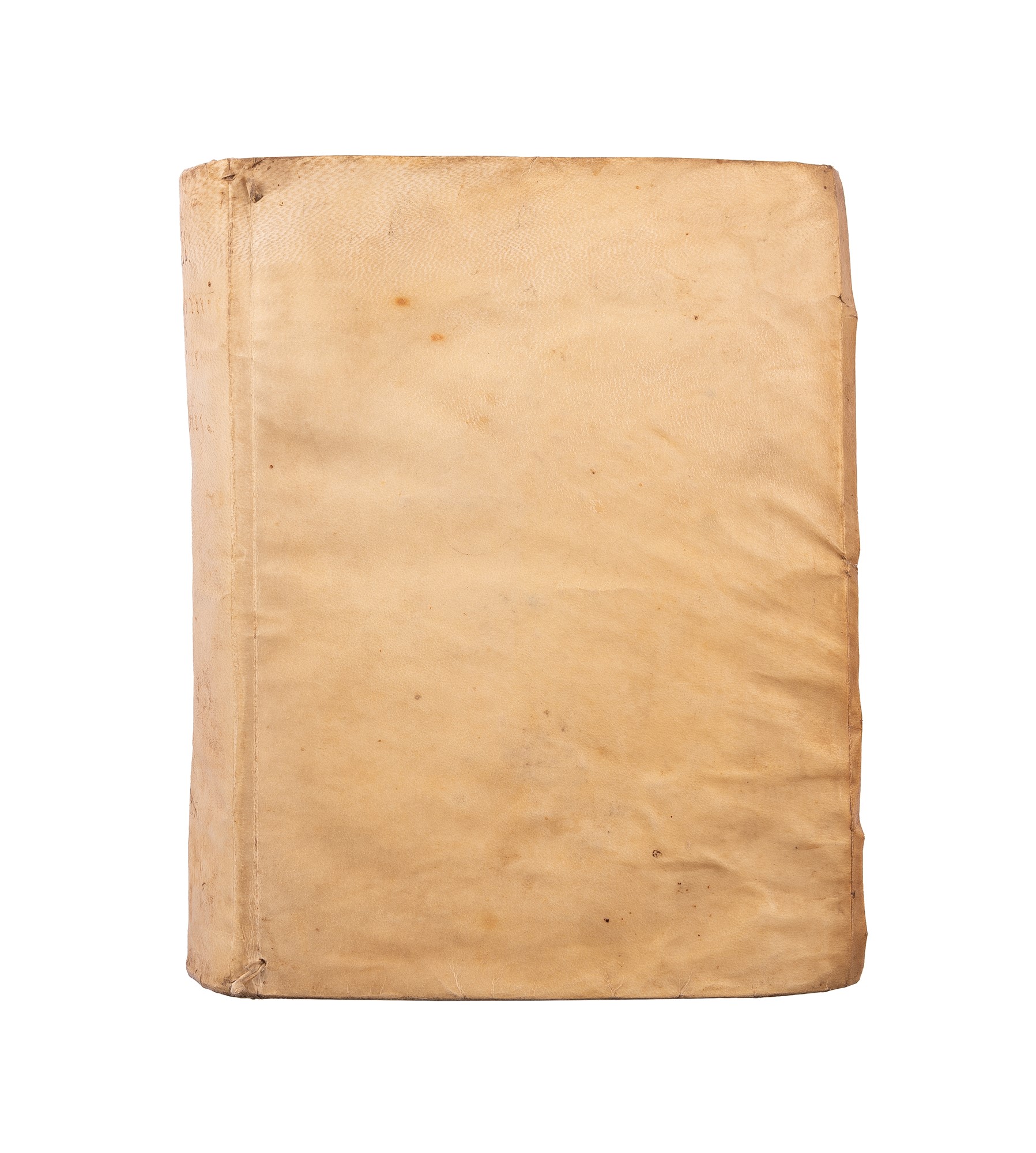 Bella legatura coeva in piena pergamena morbida, con unghiatura anteriore e il titolo manoscritto al dorso; sguardie rinnovate.
