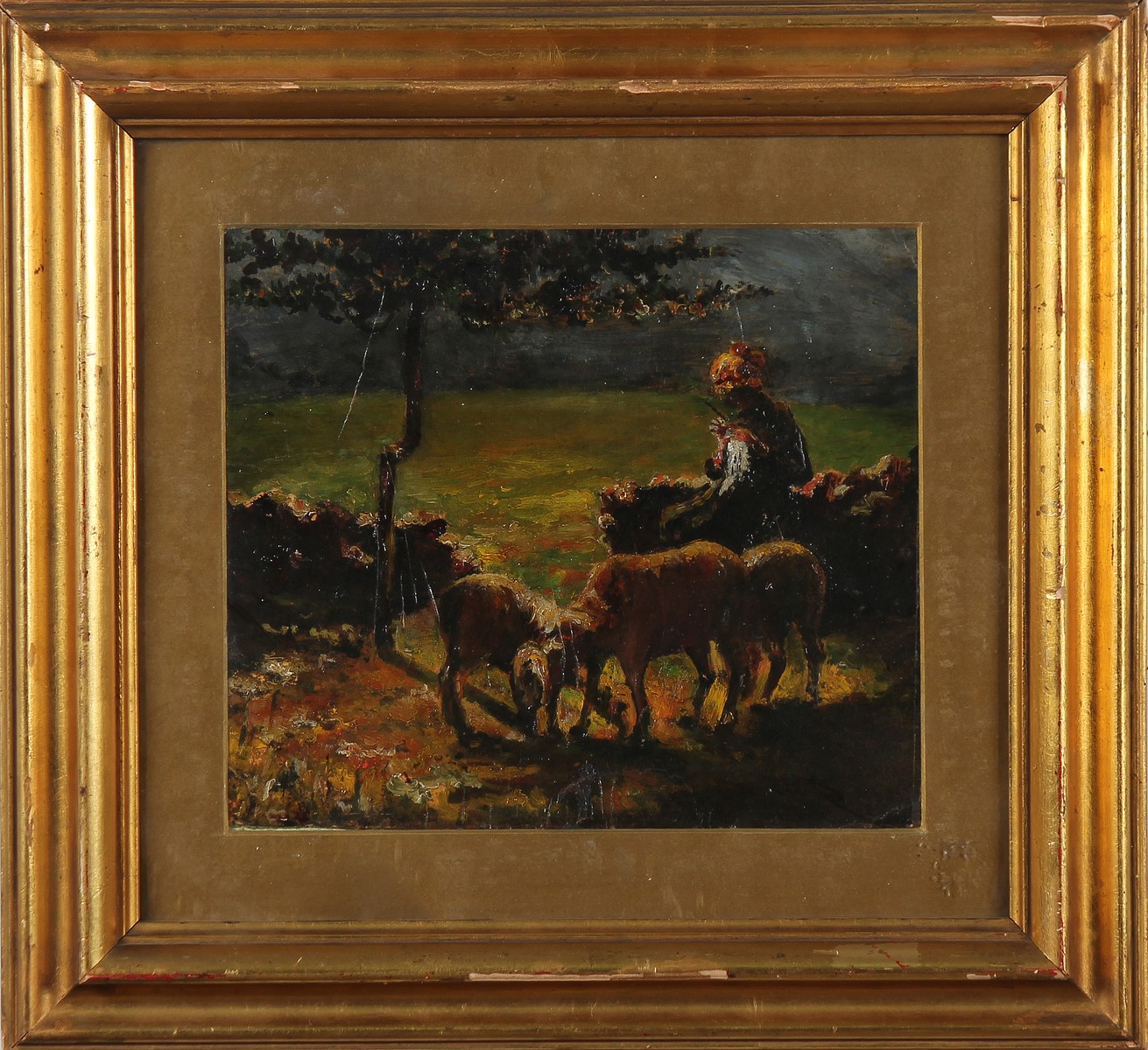 ABONDIO GIOVANNI Scena pastorale. Olio su cartone. Cm 27,00 x 30,00. Expertise a cura del Professor Luciano Anelli. Cornice presente