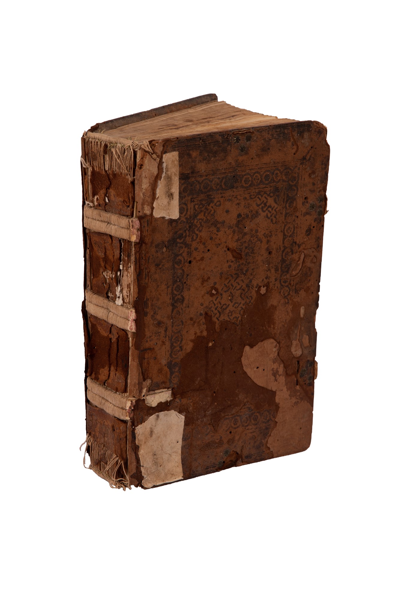 Carte [333] (di 336). Manca la prima carta di testo a2, sostituita da una carta in facsimile, e le due carte bianche in principio e in fine d'opera. Senza segnatura. Caratteri gotici (G 150) su due colonne in 47 linee. Interamente rubricato in rosso e blu. Copia scompleta di una carta di testo, con un foro di tarlo che attraversa tutto il volume, il margine inferiore del colophon ricostruito ma ad ampi margini e ben conservata. Legatura monastica con banda di cuoio decorata a freddo al dorso e ai piatti, su assi nude senza più i fermagli; rimontata, con forellini di tarlo e con lacune reintegrate nelle bande di cuoio.