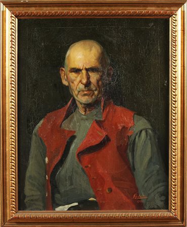 LO CASTRO GIOVANNI (1897 - 1973) Ritratto virile. 1921. Olio su tela . Cm 62,00 x 80,00. Firma e data in basso a destra. In allegato all'opera certificato di proveneienza della Galleria Pananti, Firenze. Cornice presente