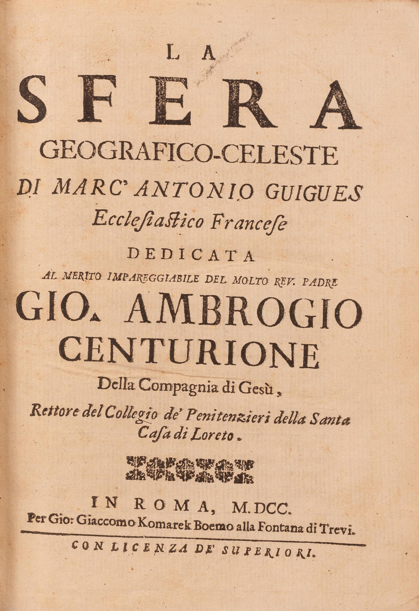 - La sfera geografico-celeste di Marc' Antonio Guigues ecclesiastico francese dedicata al merito impareggiabile del molto rev. padre Gio. Ambrogio Centurione della Compagnia di Gesù, rettore del Collegio de' Penitenzieri della Santa Casa di Loreto.