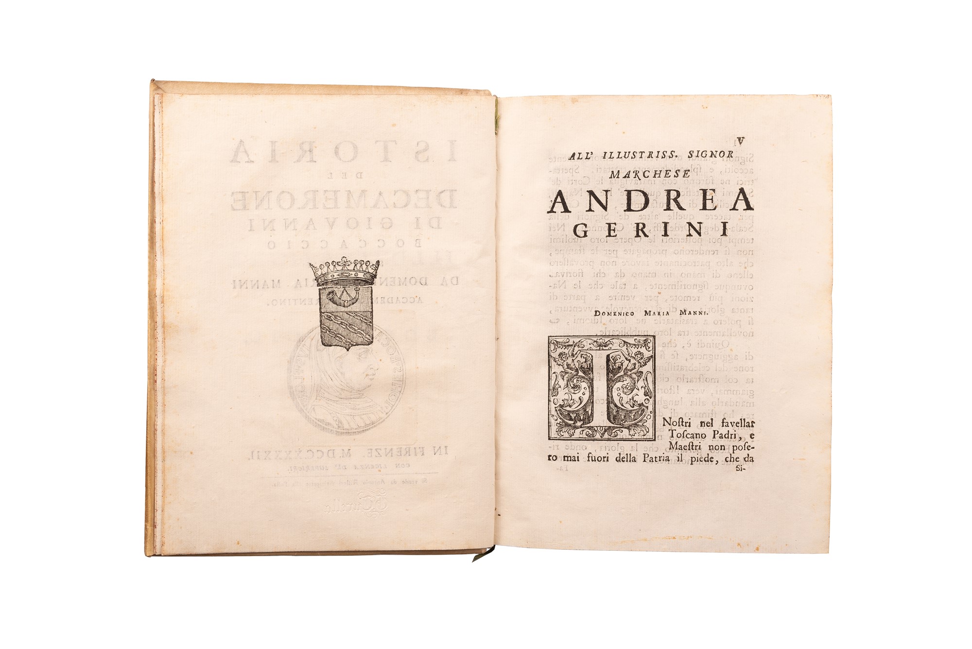 Istoria del Decamerone di Giovanni Boccaccio scritta da Domenico Maria Manni accademico fiorentino