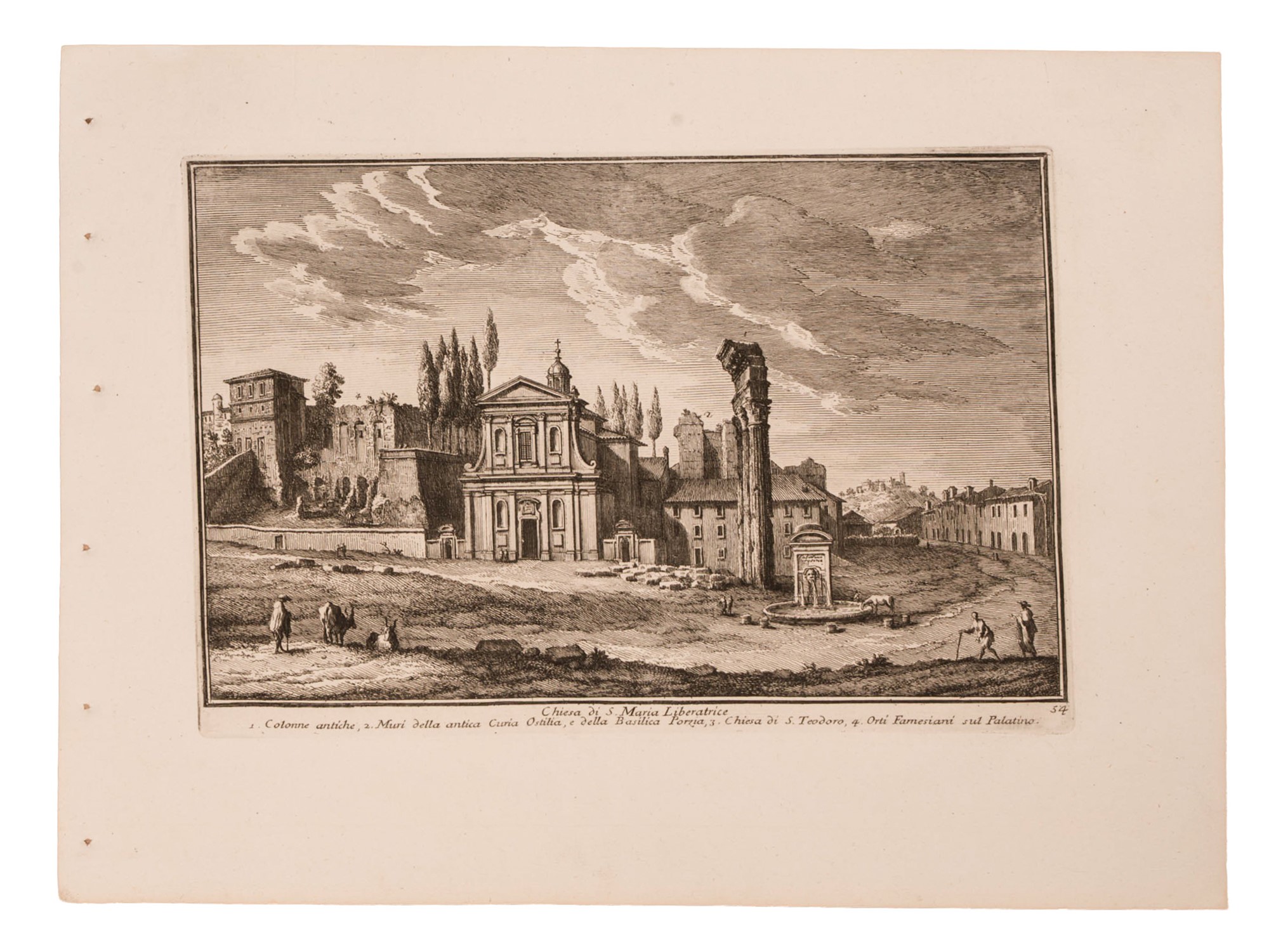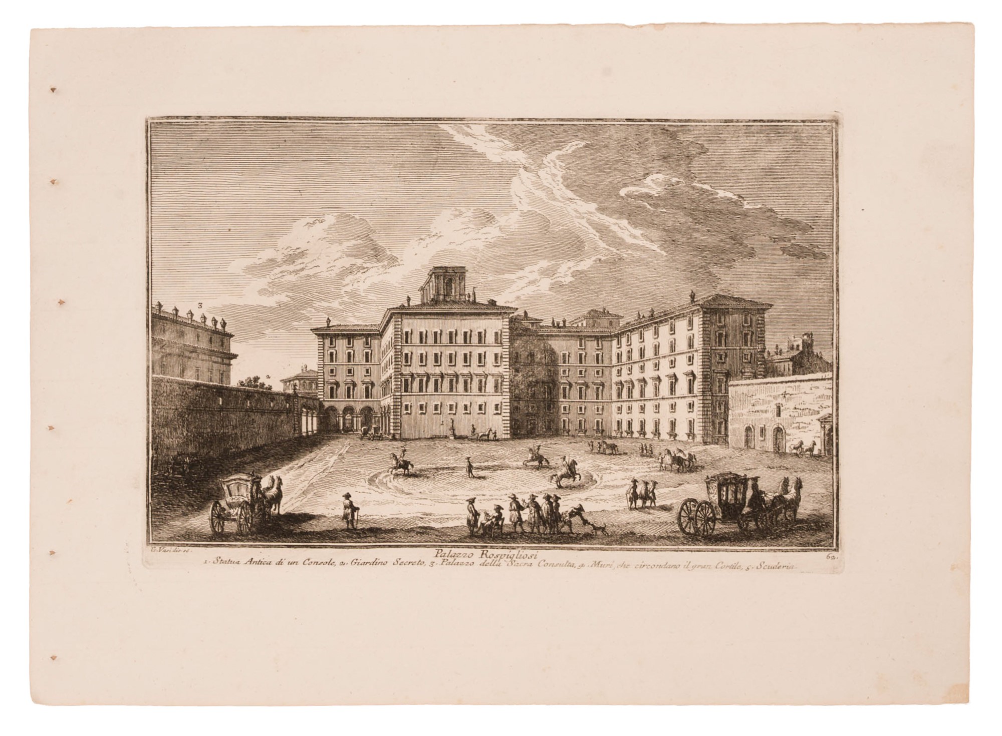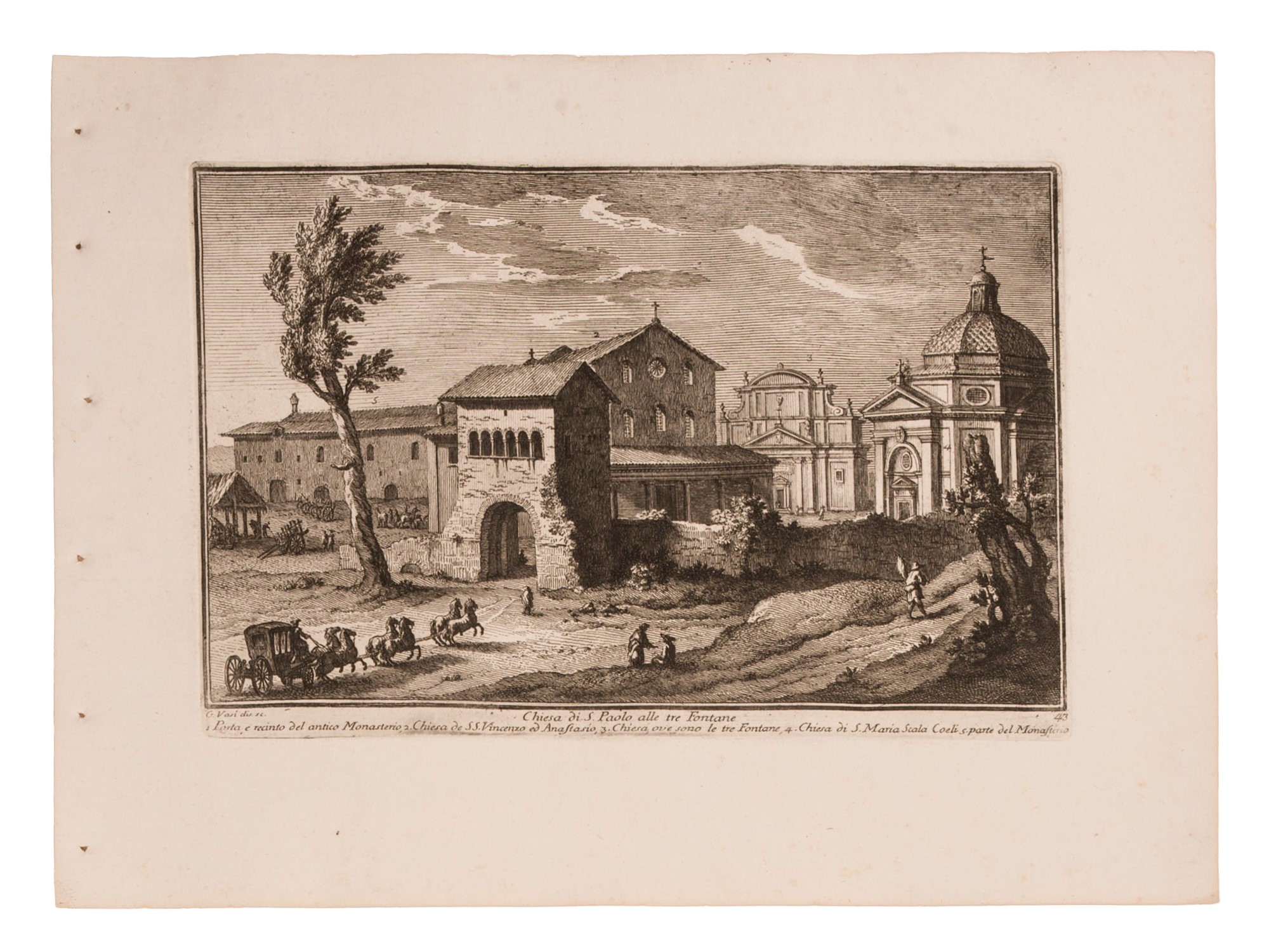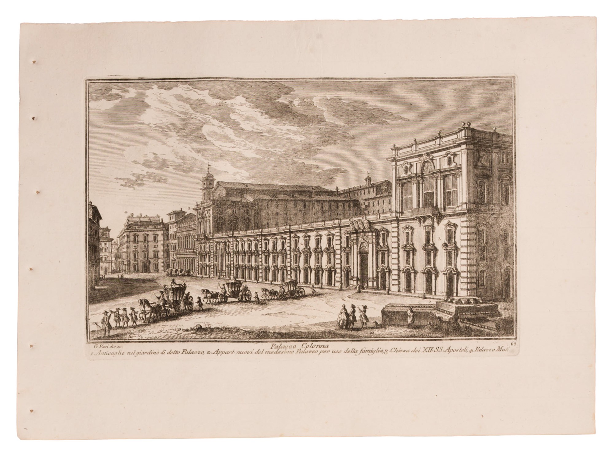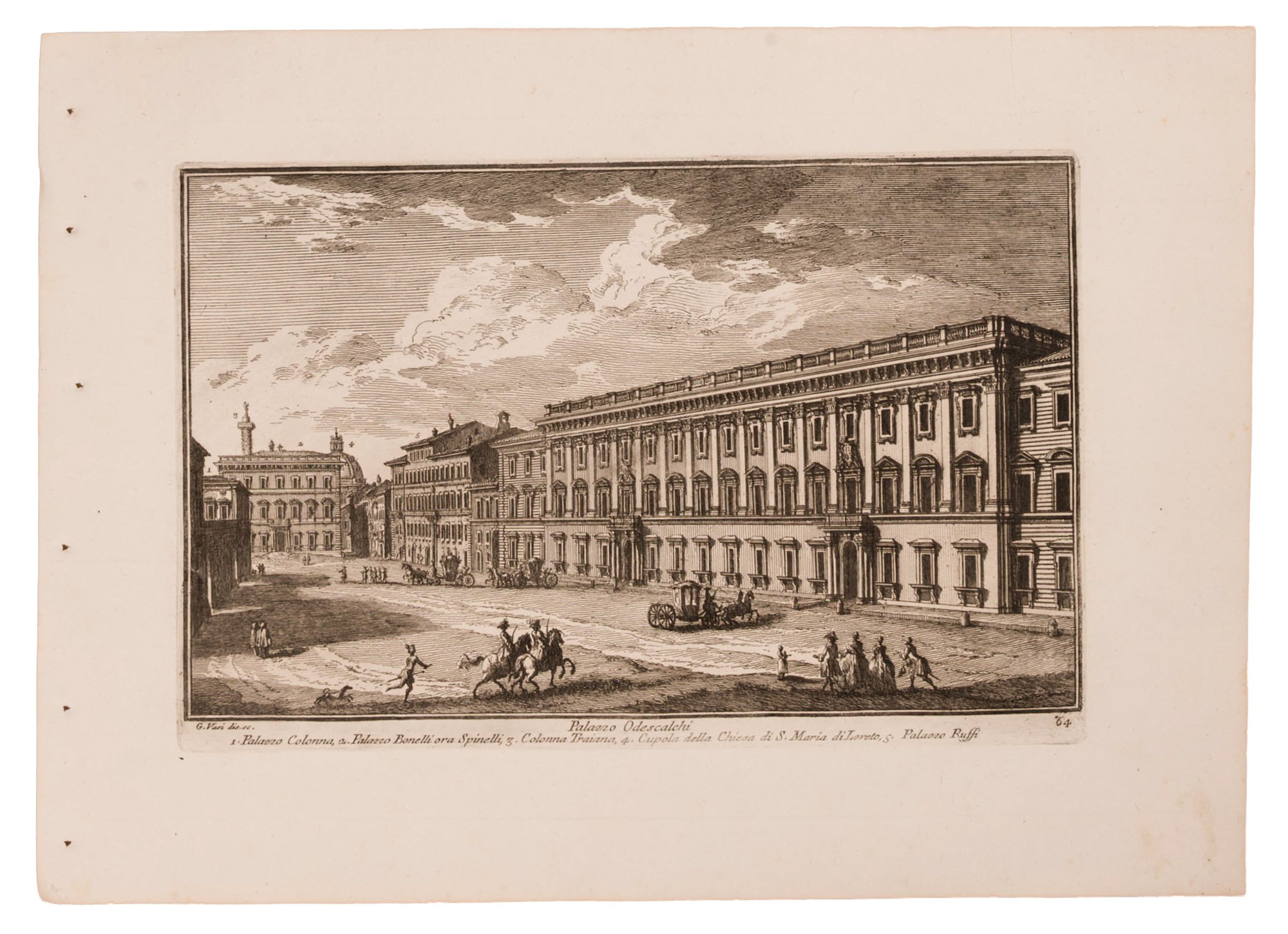 - Incisione all'acquaforte del 1745-1765. Misura alla battuta del rame cm 21 x 32.5. In discrete condizioni, ha due piccoli restauri visibili sulla sinistra, su carta vergata priva di filigrana. Incisa da Vasi Giuseppe. Pittore, disegnatore, architetto,archeologo, incisore all’acquaforte ed al bulino. Nato a Corleone (PA) il 28 Agosto 1710, morto a Roma il 16 Aprile 1782. Dopo aver praticato la pittura nel suo paese, venne a Roma e fu allievo di Sebastiano Conca, P. L. Ghezzi e dello Juvara. Acquistò fama di abile incisore e lavorò per illustri protettori quali Ferdinando e Carlo III di Napoli, Benedetto XIV. Fu incisore della corte di Napoli e fatto cavaliere. Le sue opere incise sono immortali. Eseguì delle pitture visibili a Palazzo Farnese ed al Palazzo di Caprarola. Piranesi fu suo allievo.