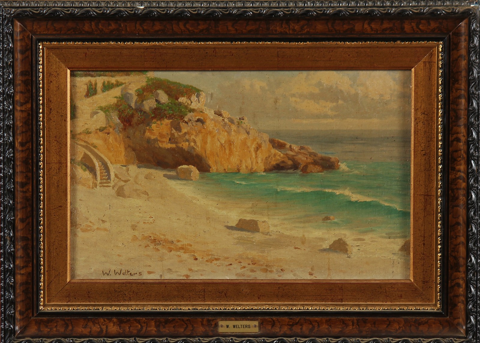 WELTERS WILLEM (1881 - 1972) Marina. Olio su tela applicata su tavola. Cm 40,00 x 25,00. Firma in basso a sinistra. . Cornice presente
