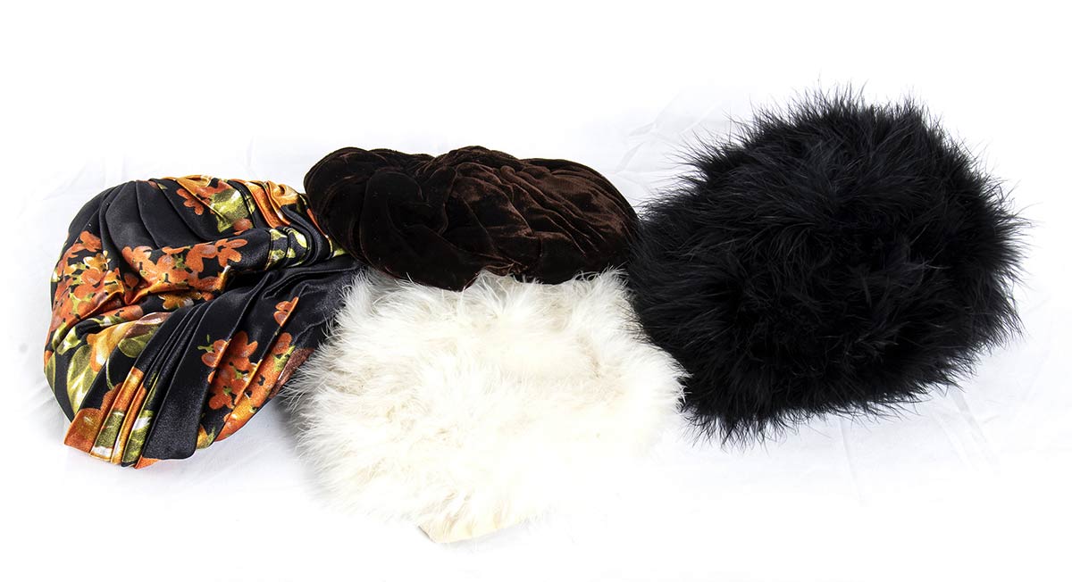 Lotto di 4 cappelli anni 50/60 (2 turbanti in velluto e due in marabù) grado di condizione generale B