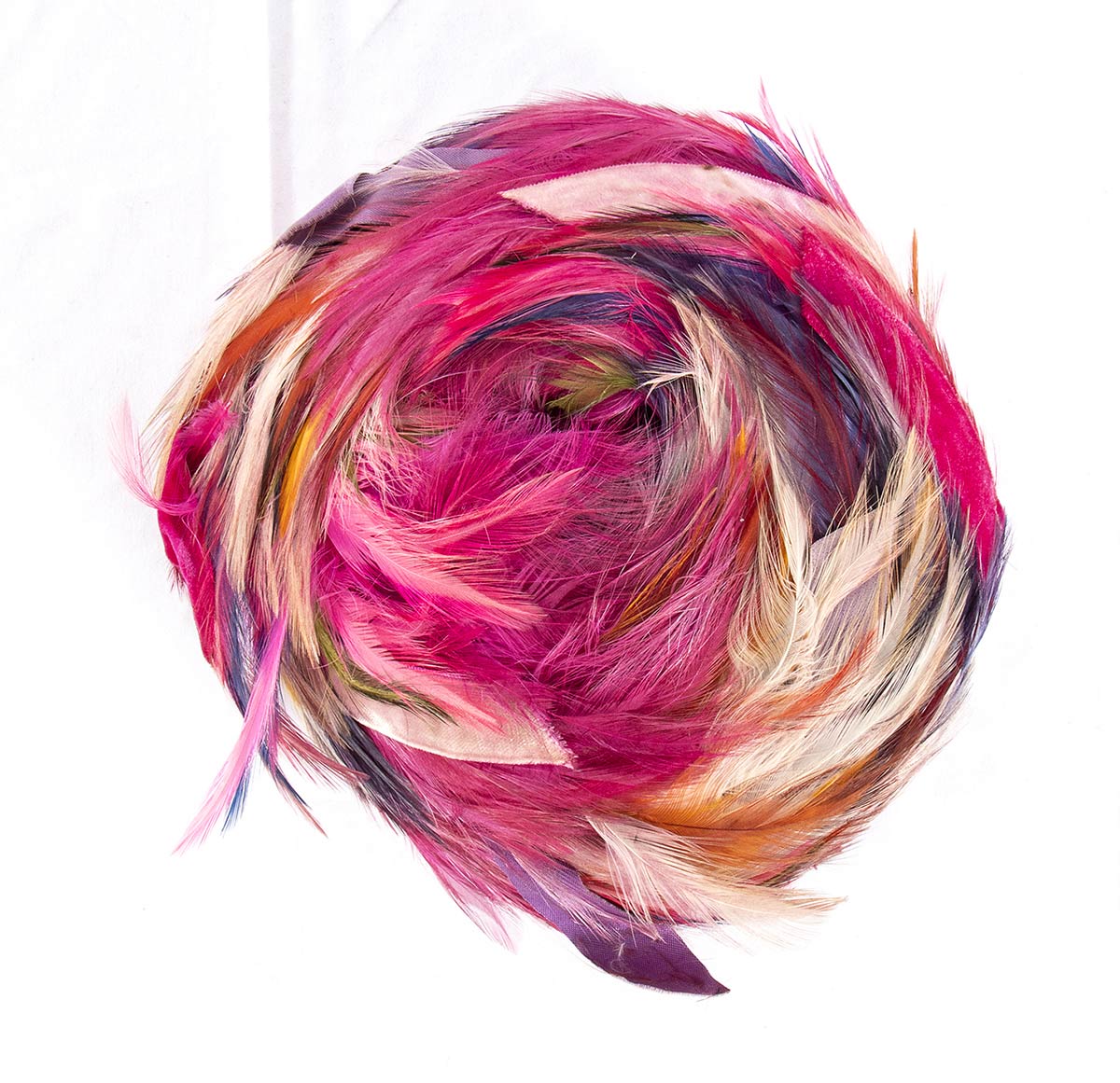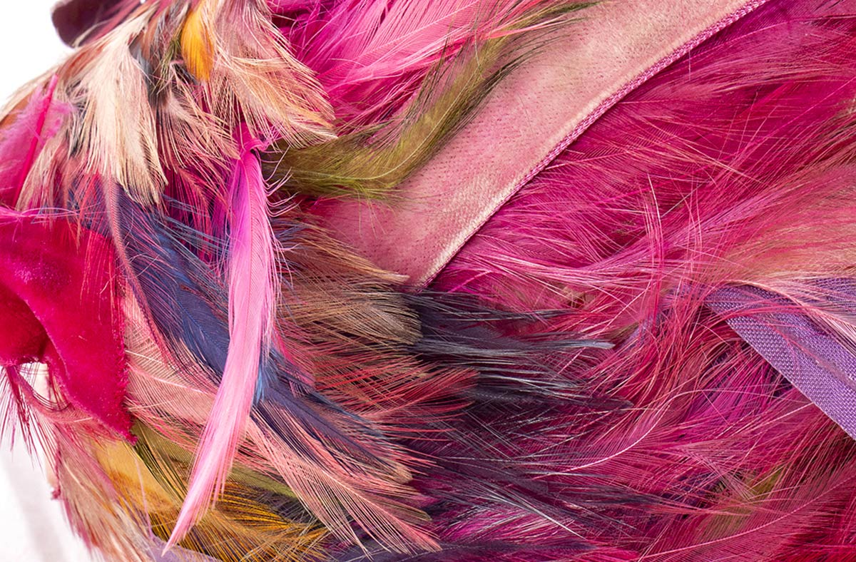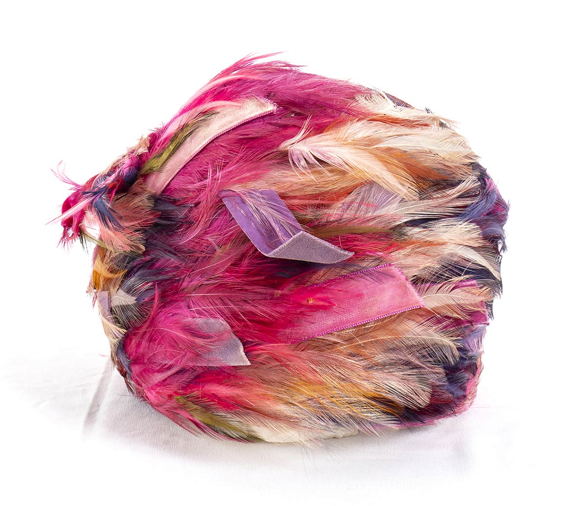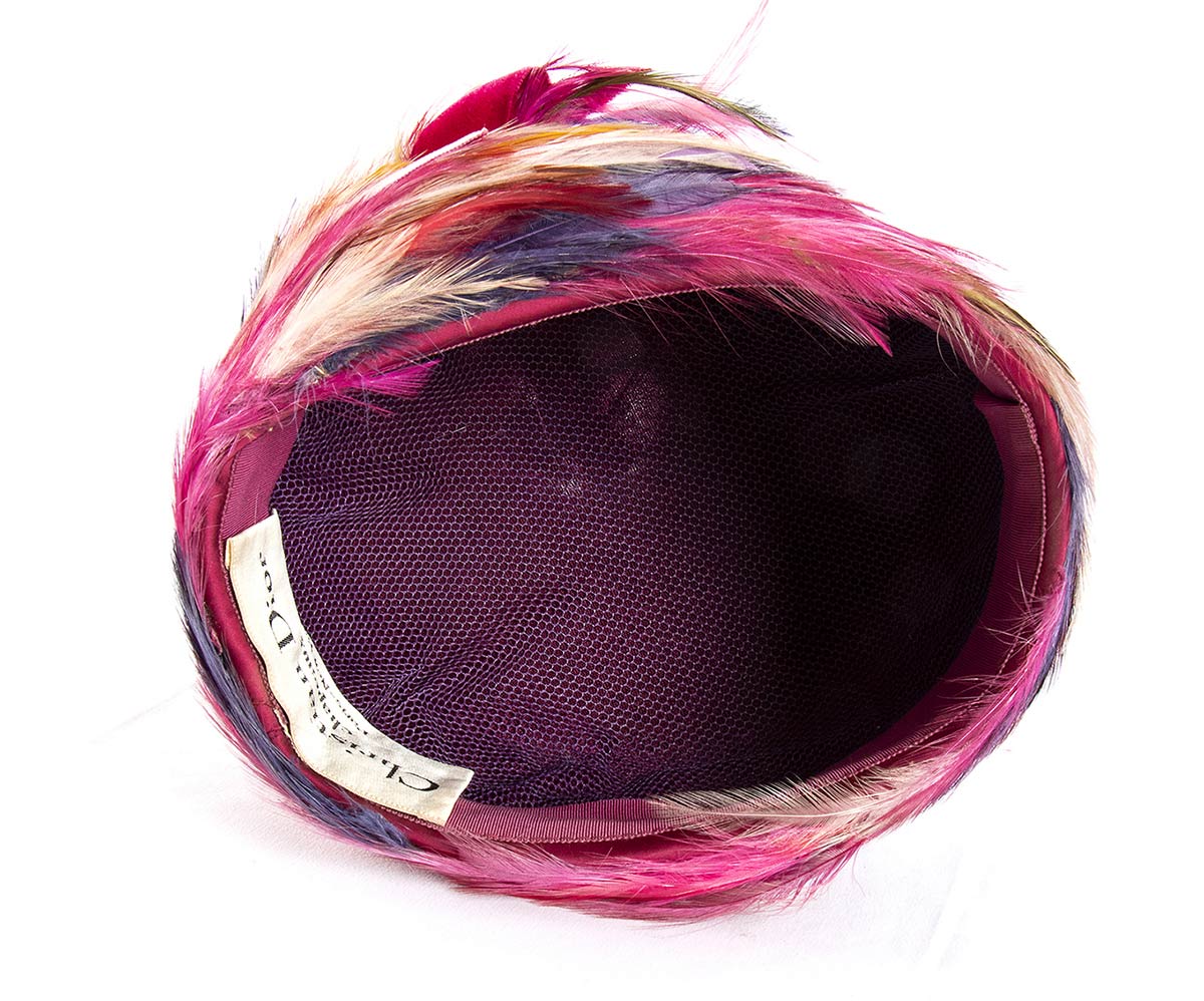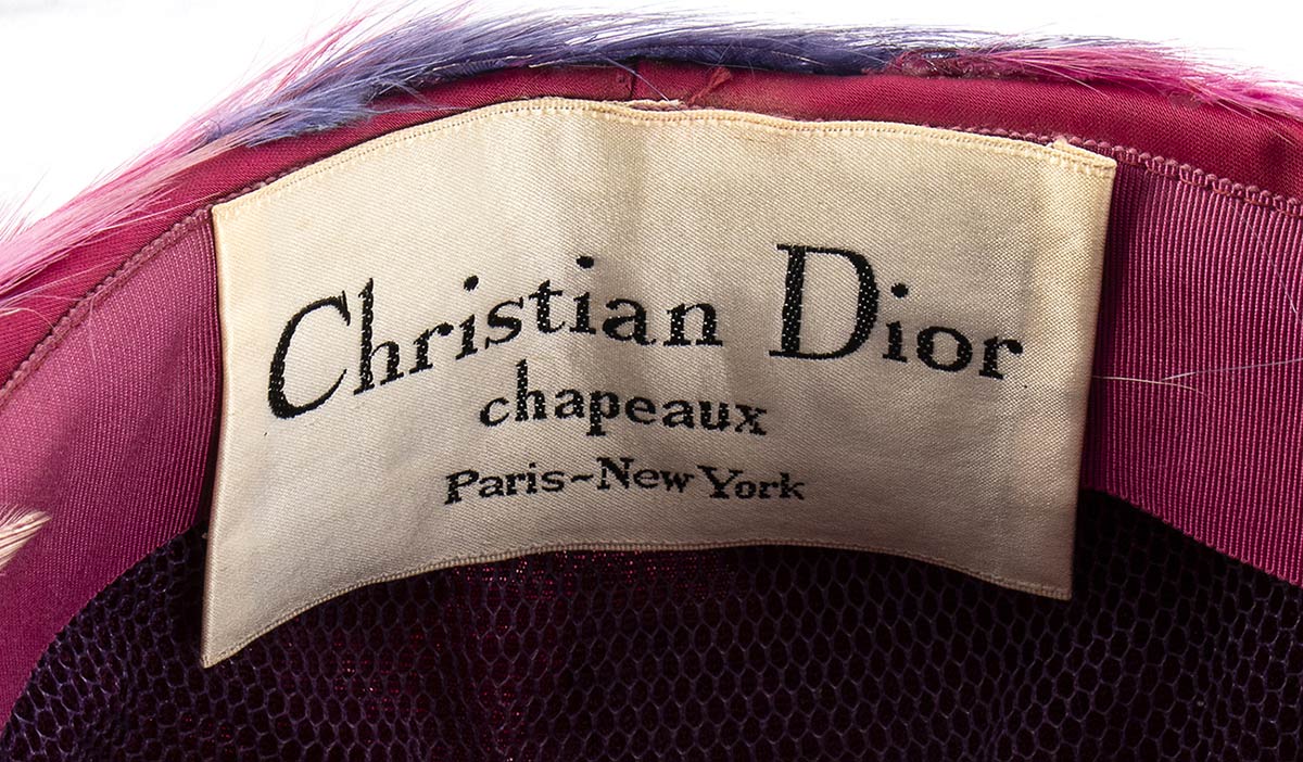 Cappello anni 60 Christian Dior, piume e nastri in velluto, grado di condizione generale C (segni di utilizzo)