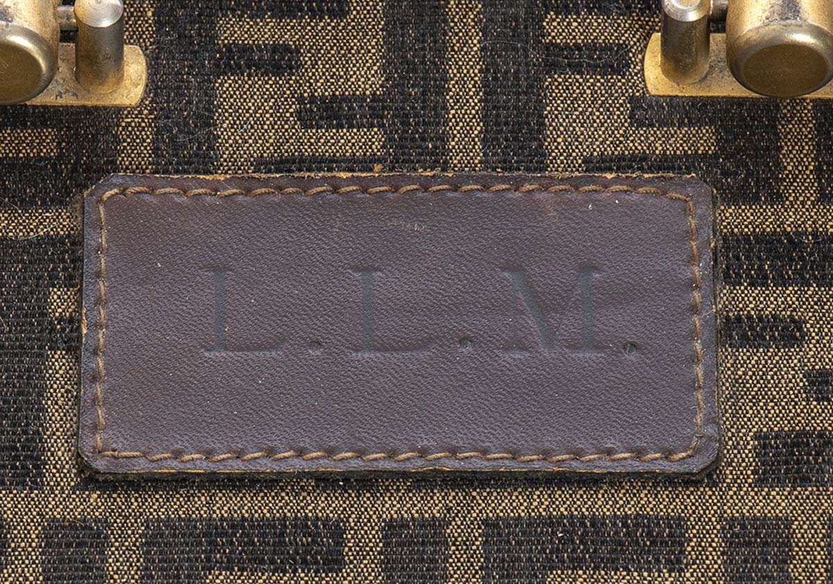 Beauty case rigido Fendi fine anni 70 inizio anni 80 in tela monogram profili in pelle, portaflaconi e specchietto, grado di condizione generale C (segni di utilizzo)