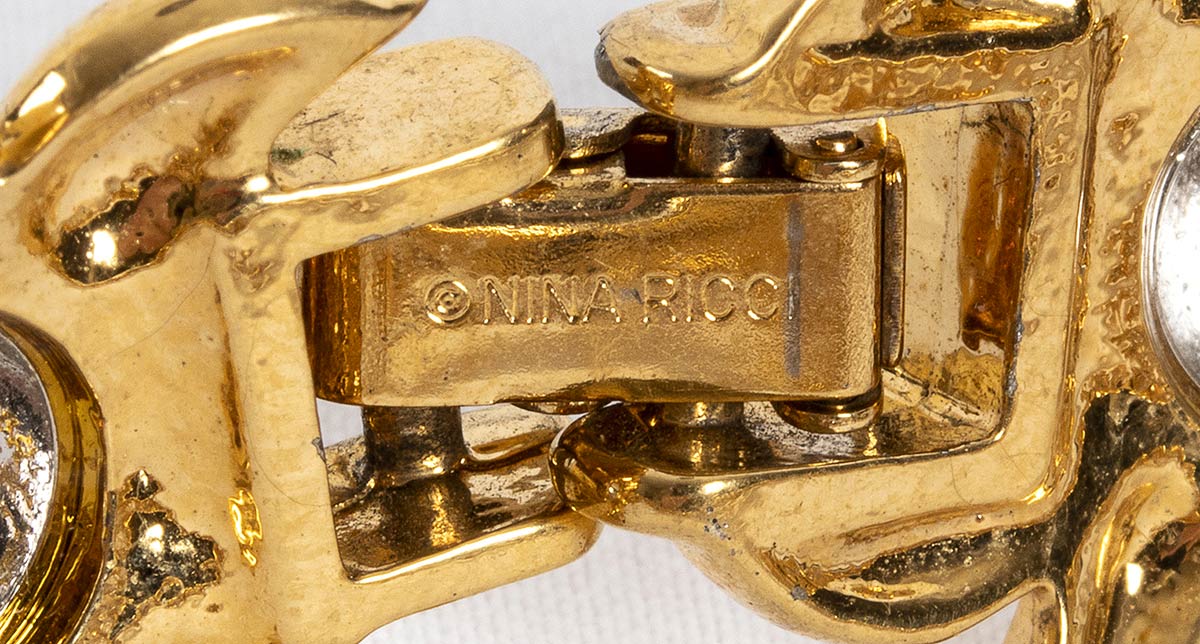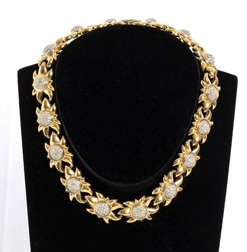Collana Nina Ricci fine anni 80 in metallo dorato elementi con strass grado di condizione generale B
