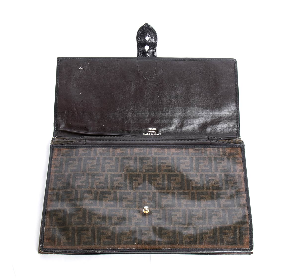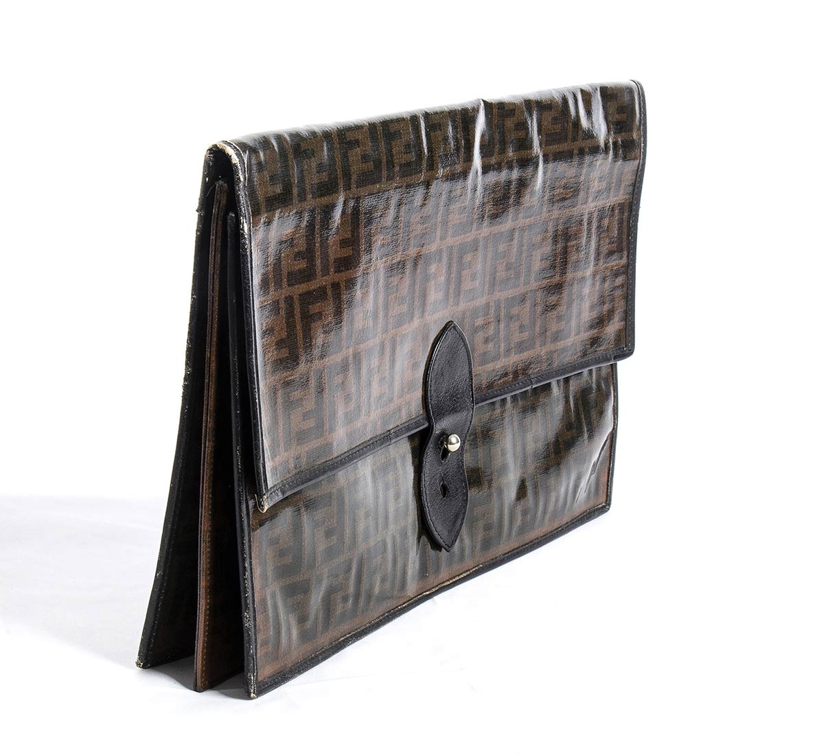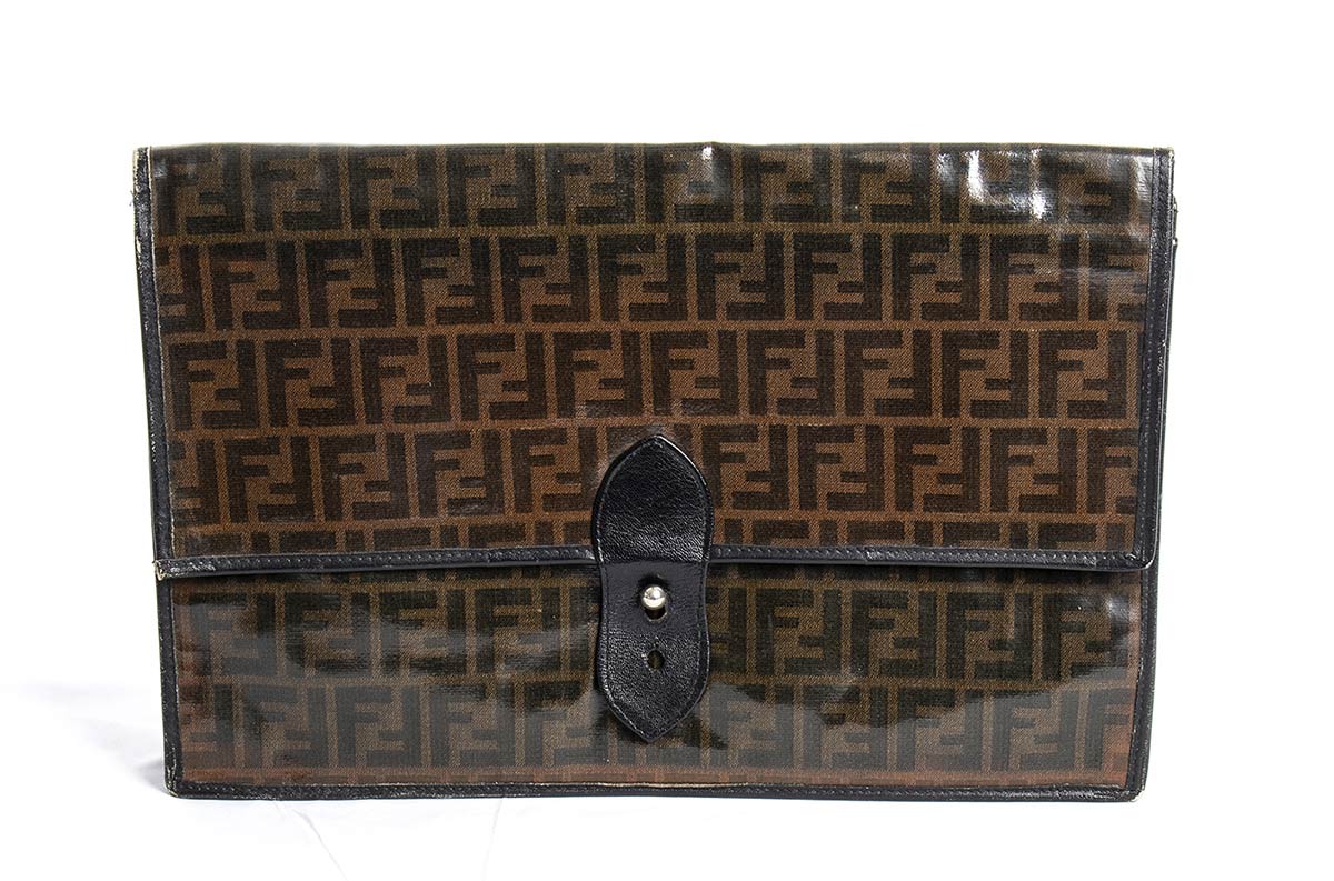 Cartella Fendi fine anni 70 inizio anni 80, pelle e tela vinilica, grado di condizione generale C (segni di utilizzo)