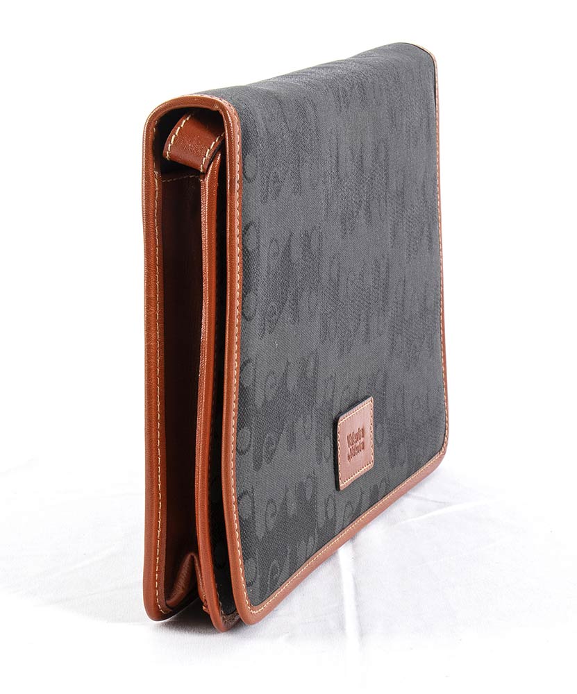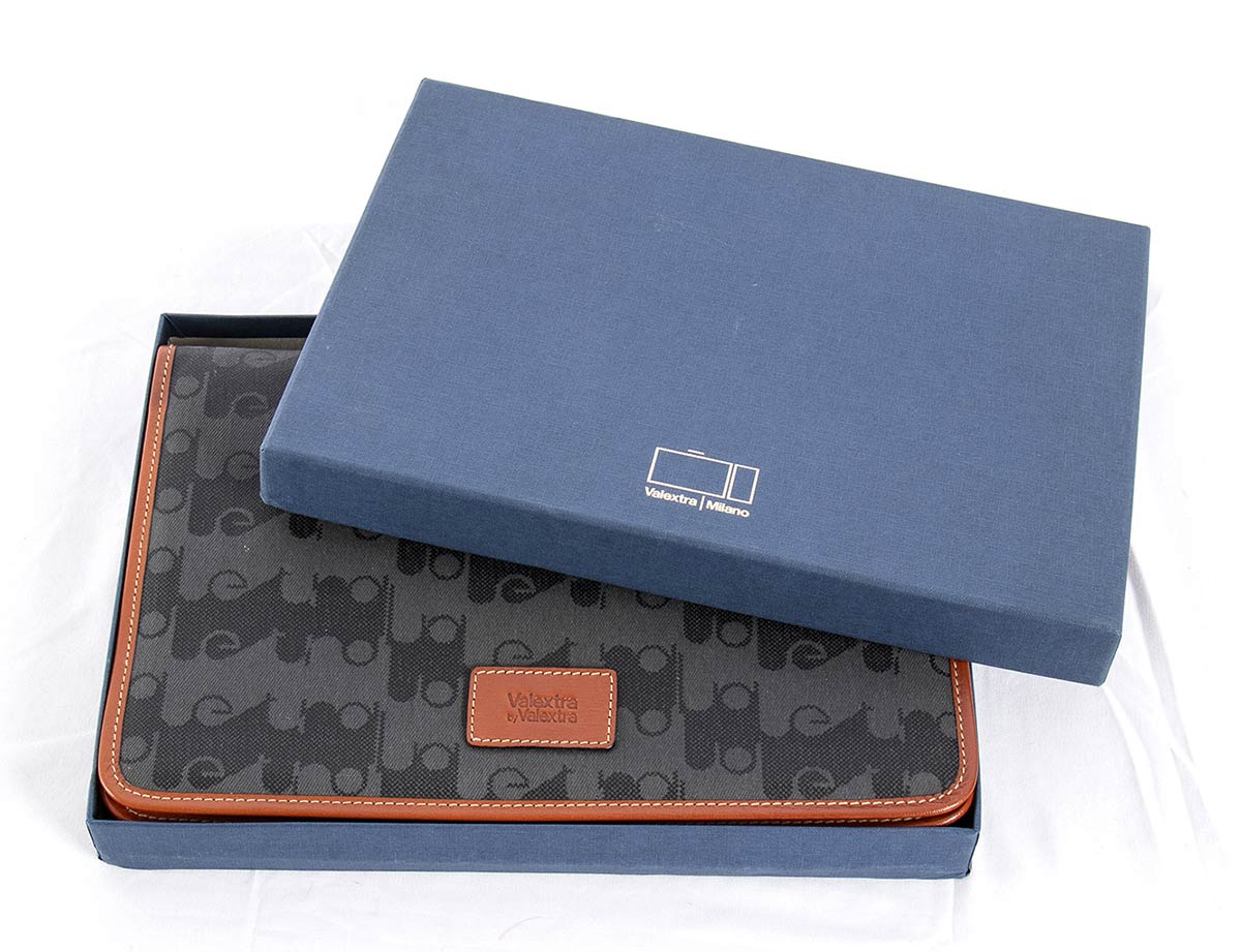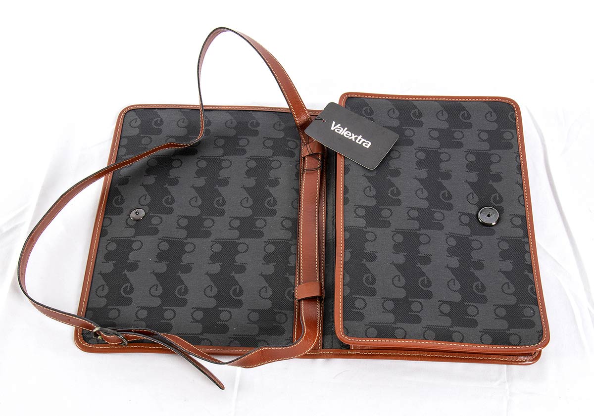 Borsetta a cartella fine anni 80 Valextra in tela con profili in pelle, grado di condizione generale B