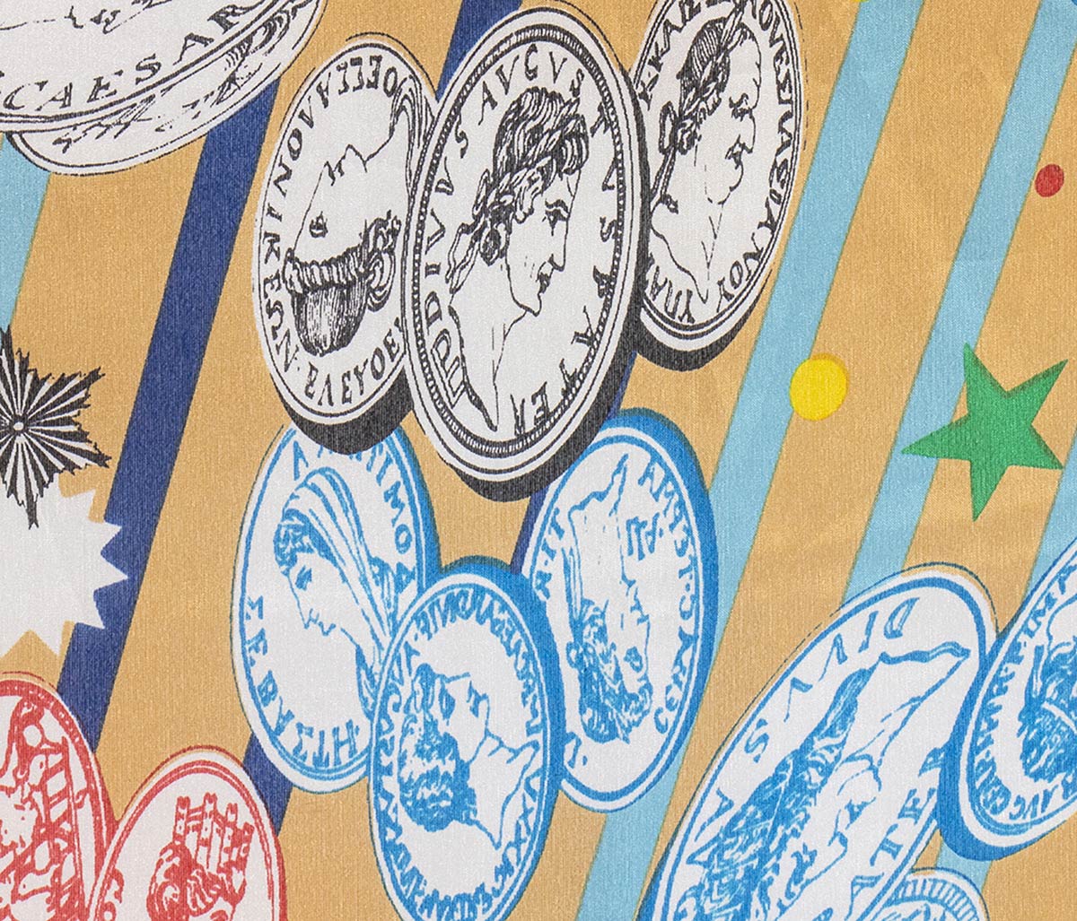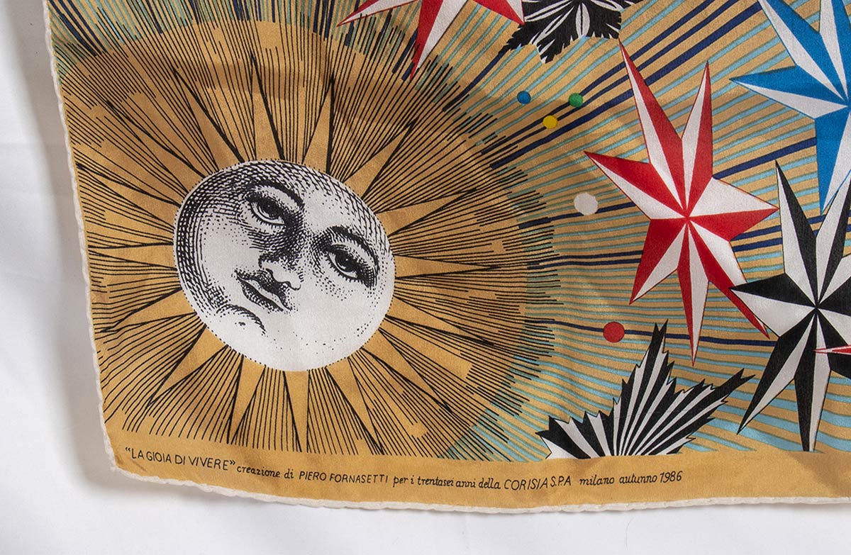 Stola in seta Fornasetti autunno 1986 "La gioia di vivere", grado di condizione generale B