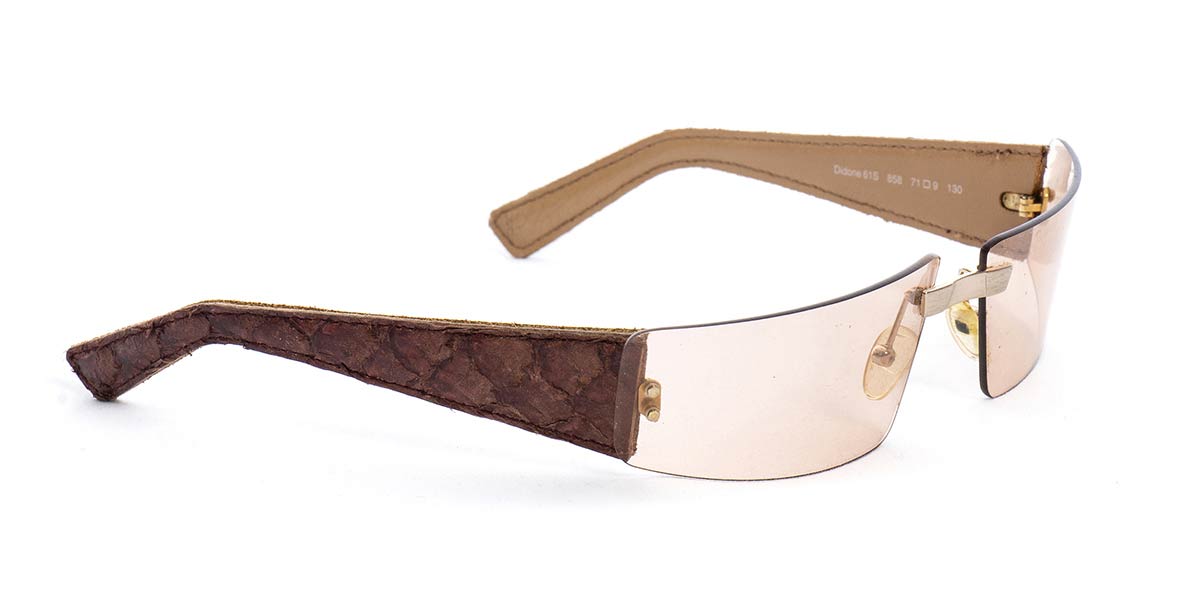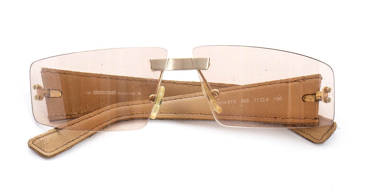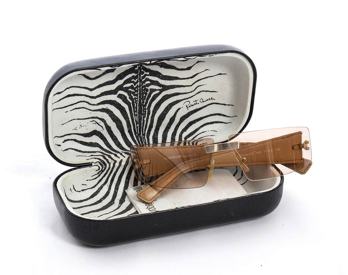 Occhiali da sole Roberto Cavalli modello Didone 61S primi anni 2000, stanghette rivestite in pelle stampa rettile, custodia originale, grado di condizione generale B