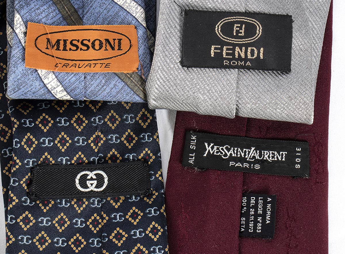 Lotto di 5 cravatte anni 80/90: 1 Gucci, 2 Yves Saint Laurent, 1 Missoni, 1 Fendi, grado di condizione generale B