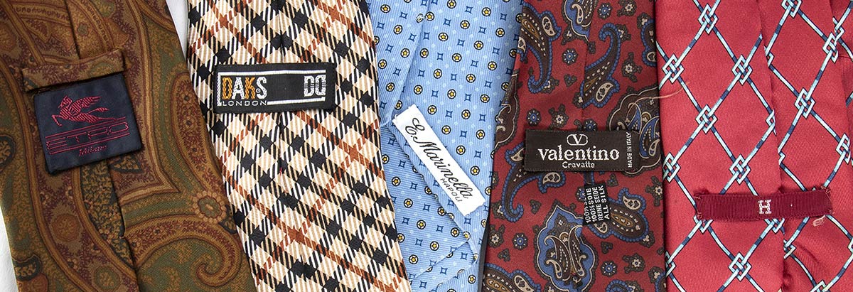 Lotto di 5 cravatte anni 80/90: 1 Etro, 1 Marinella, 1 Daks, 1 Hermes, 1 Valentino, grado di condizione generale B
