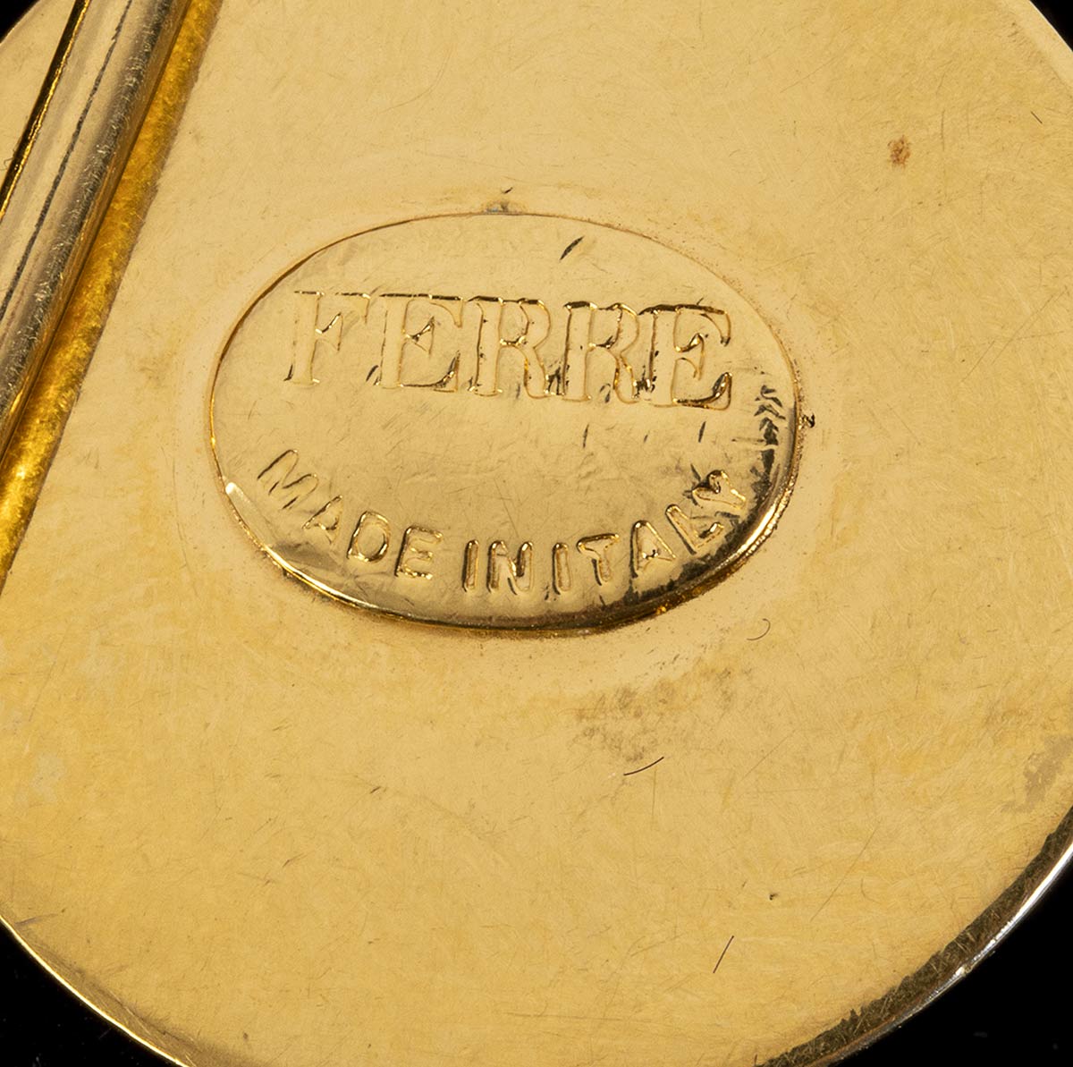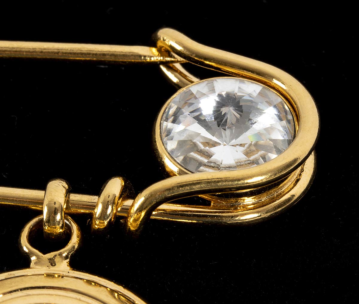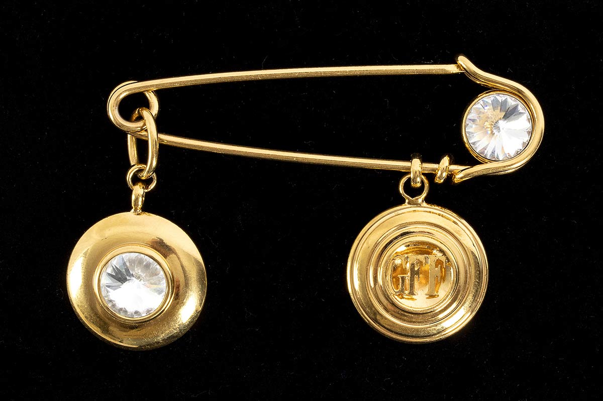 Spilla Gianfranco Ferrè anni 90 in metallo dorato, strass, grado di condizione generale B