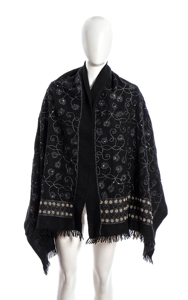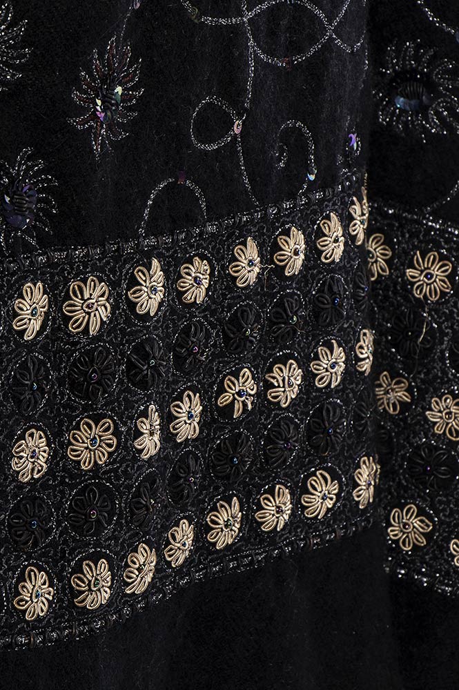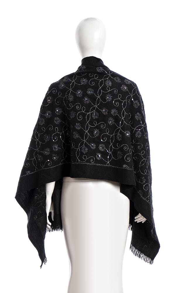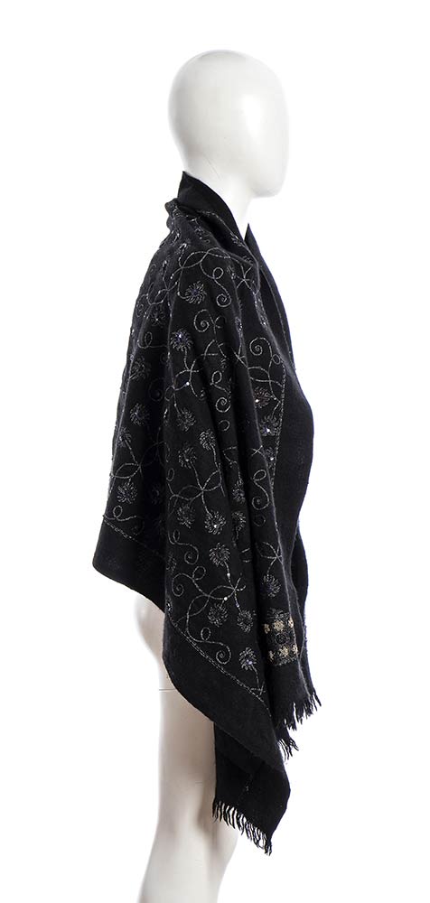 Scialle anni 90 Dries Van Noten in lana nera ricamata, grado di condizione generale B