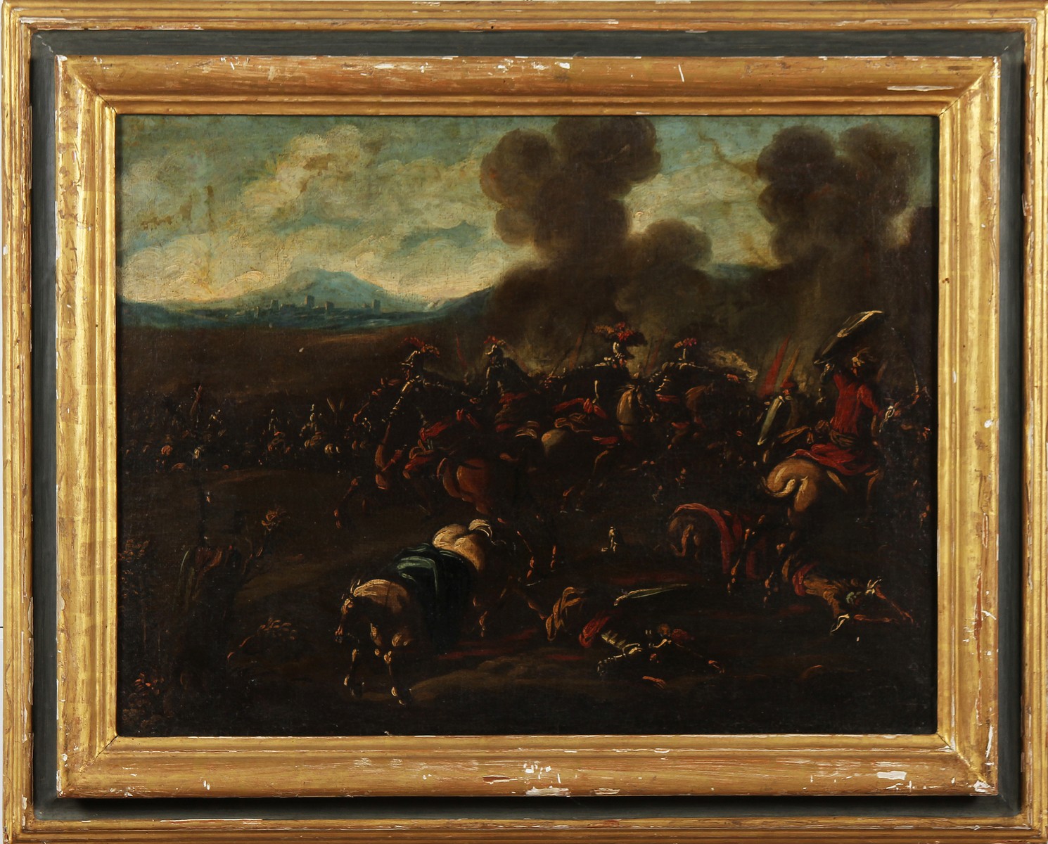 ANONIMO Battaglia. Olio su tela . Cm 64,00 x 49,00. Stile del XVIII secolo. Cornice presente
