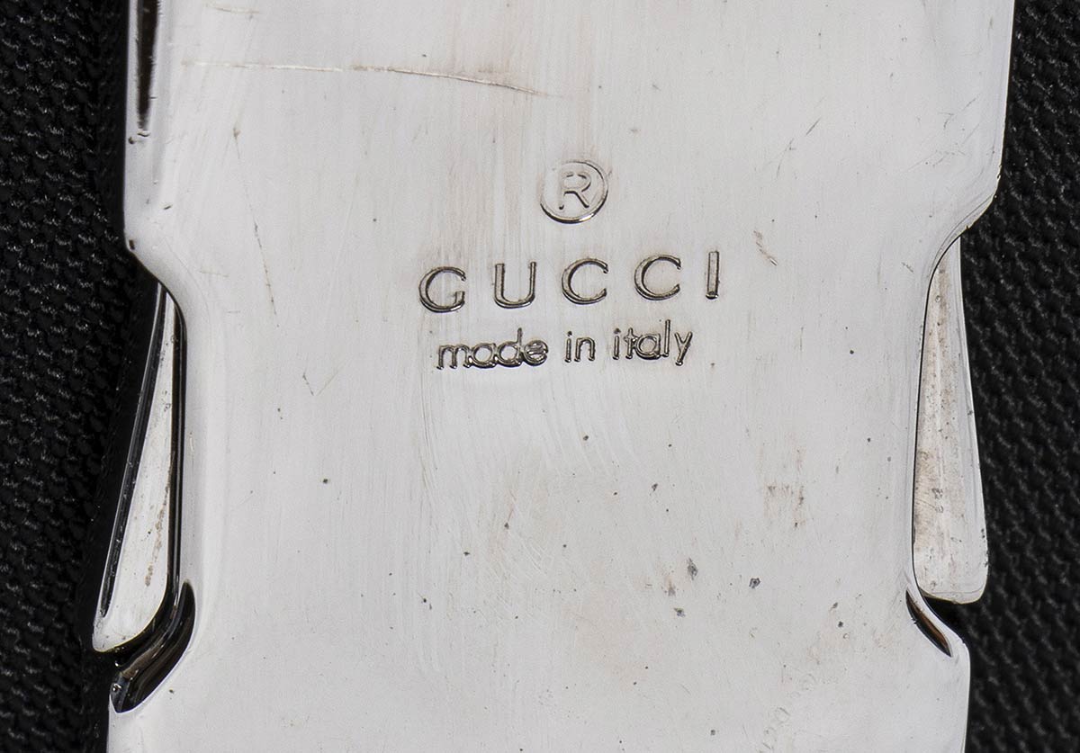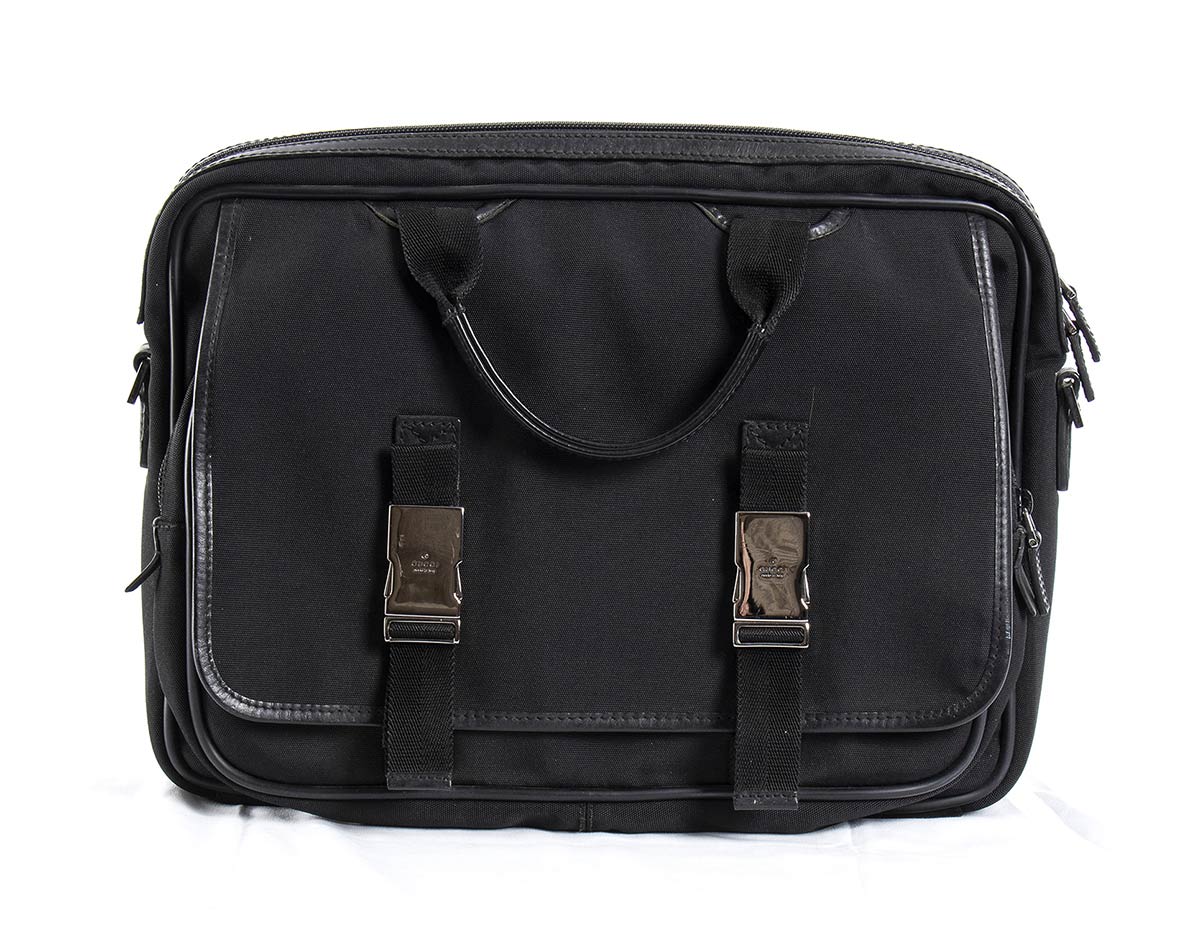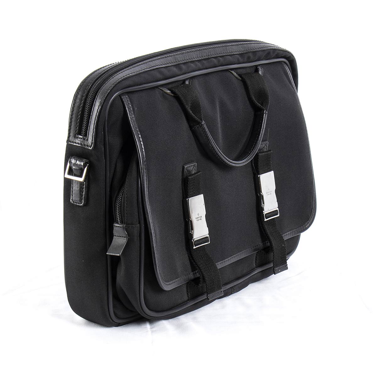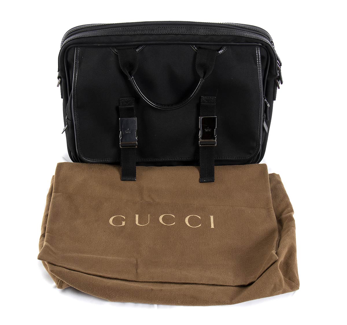 Borsa porta computer Gucci 2010 ca in nylon nero e pelle, grado di condizione generale B
