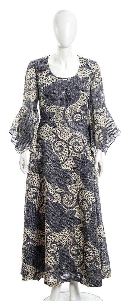 Maxi abito inizio anni 70 in lurex e tessuto misto, grado di condizione generale B