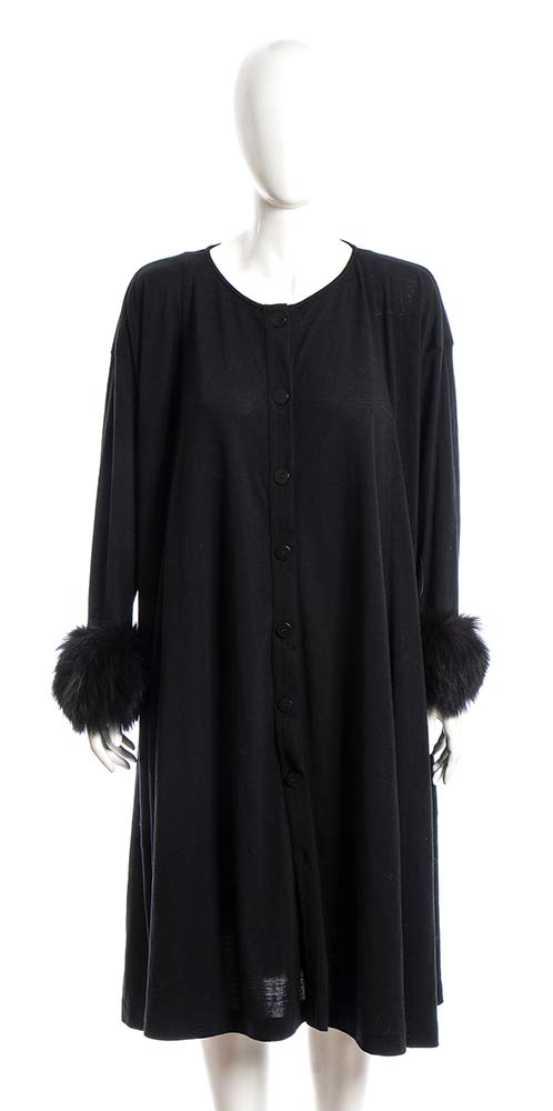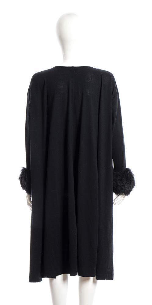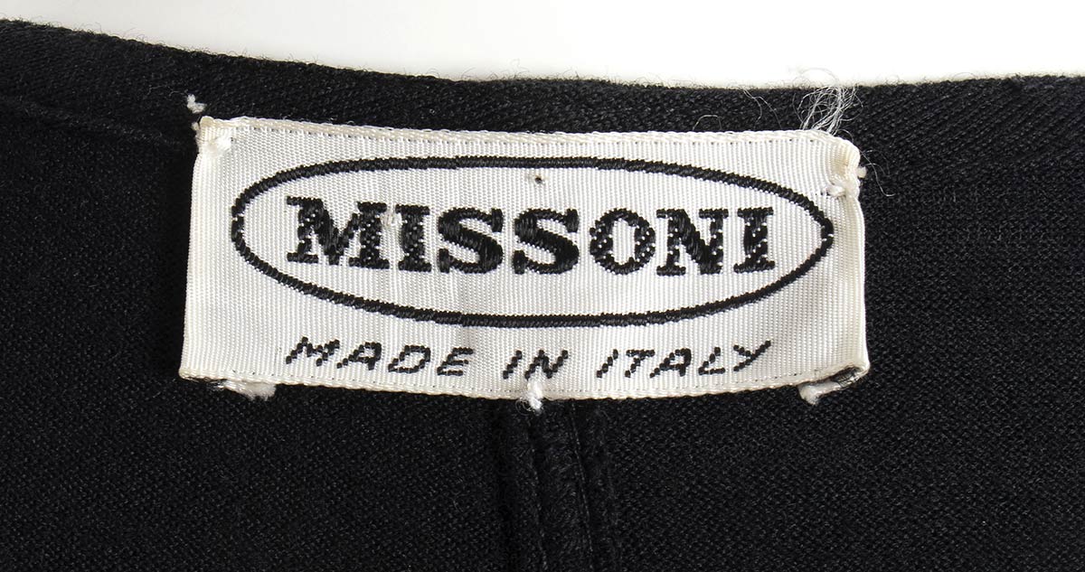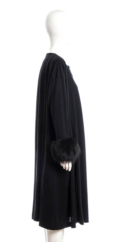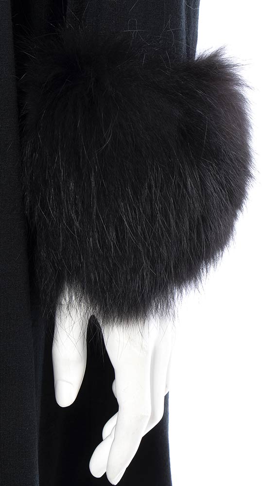 Soprabito Missoni fine anni 70 in lana nera, polsi con pelliccia, grado di condizione generale B