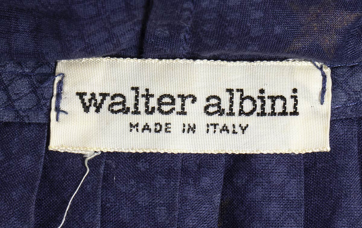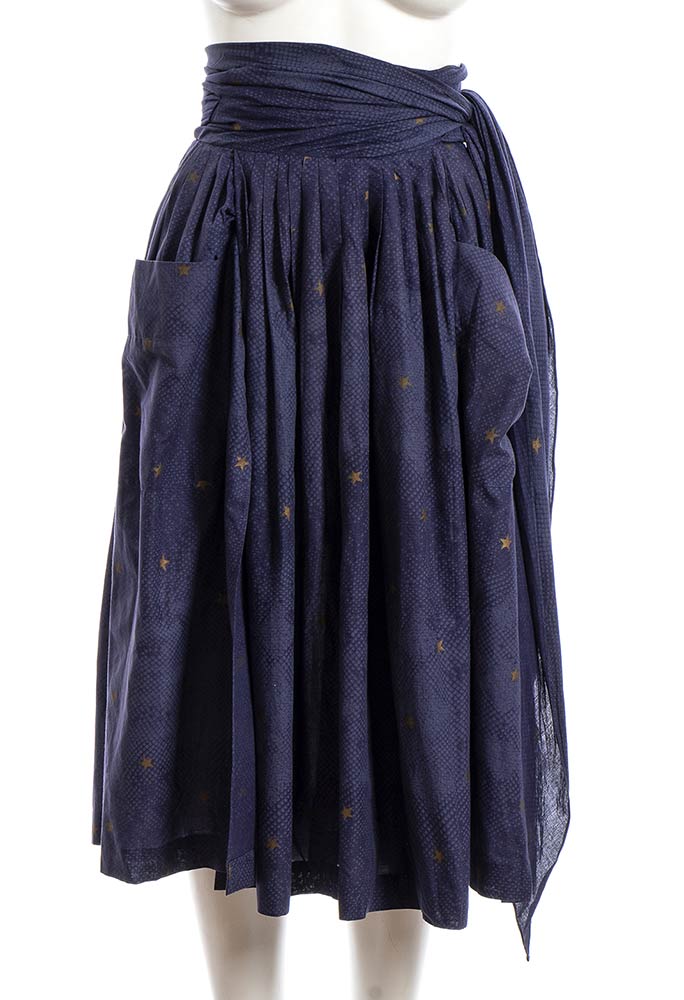 Gonna Walter Albini primavera estate 1980 in cotone blue pattern con stelle dorate, cintura a fusciacca, grado di condizione generale B