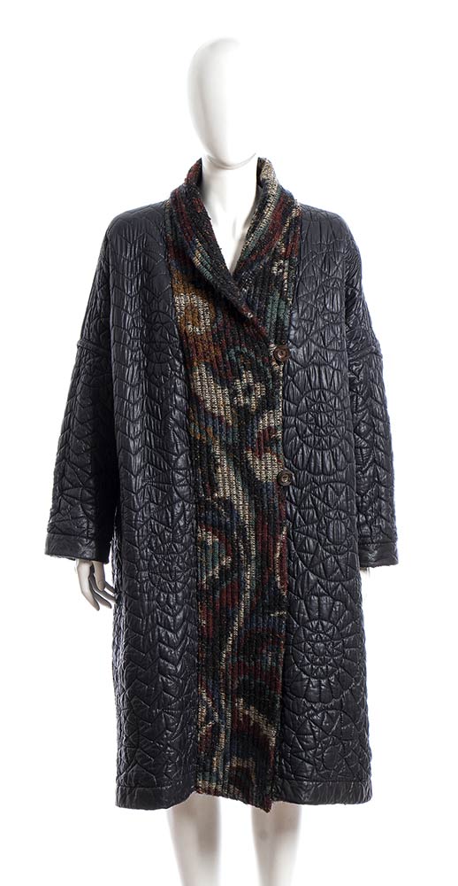 Cappotto Missoni anni 80/90 (attribuito, etichetta mancante) in lana/tessuto impermeabile trapuntato double face, grado di condizione generale B