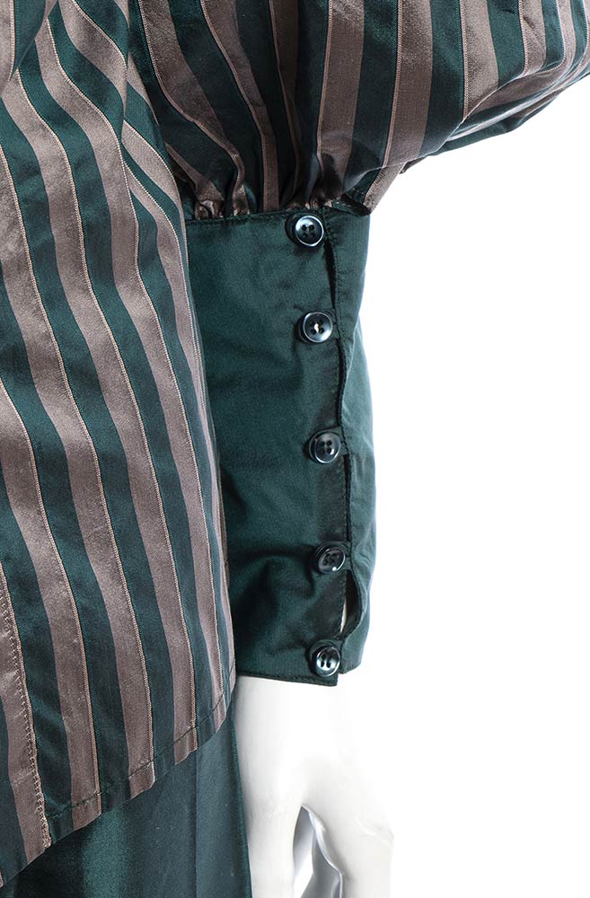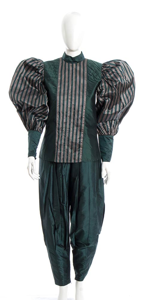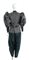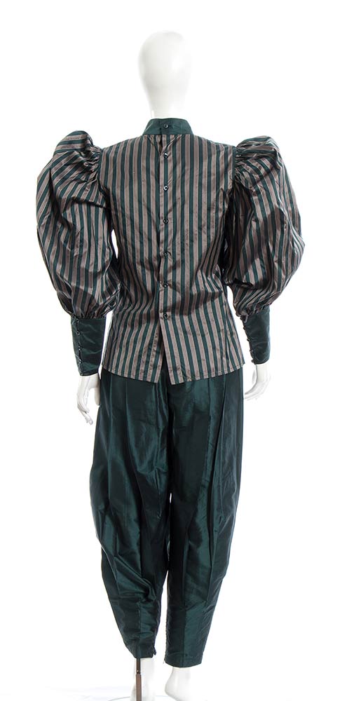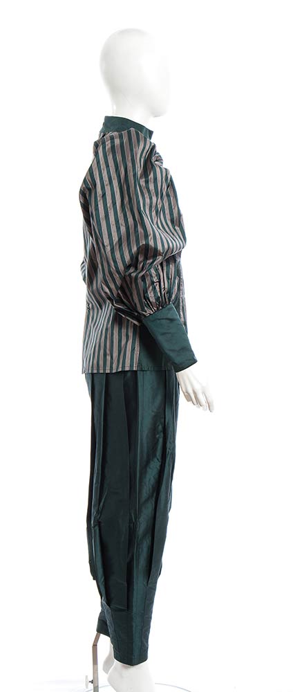 Completo ( camicia e pantalone) inizio anni 80 Pancaldi & B, in seta color petrolio, grado di condizione generale B