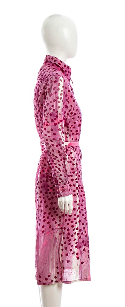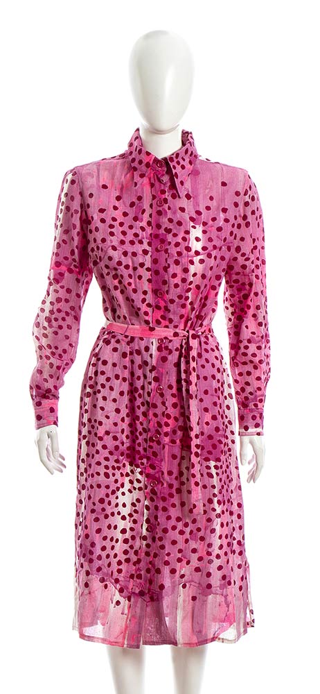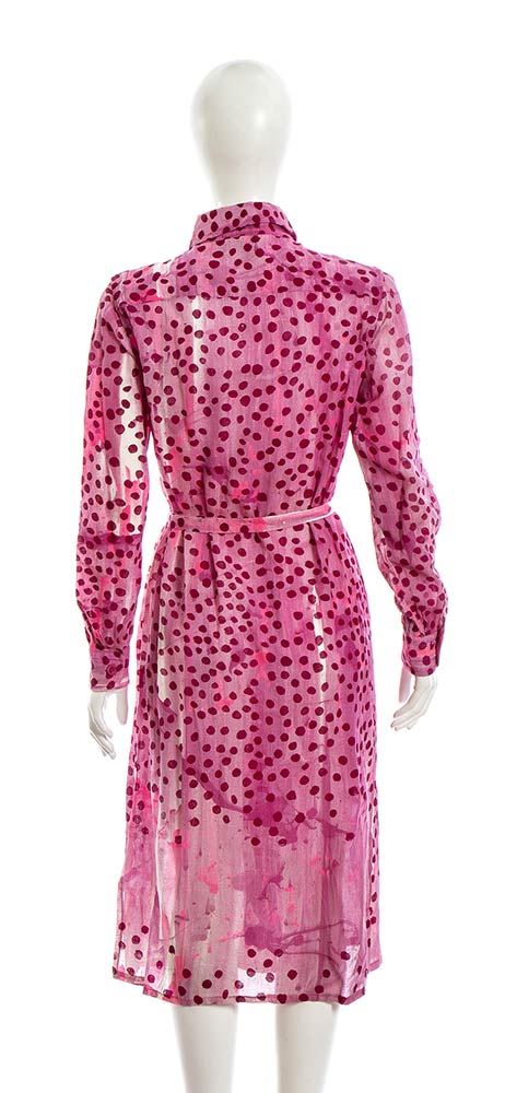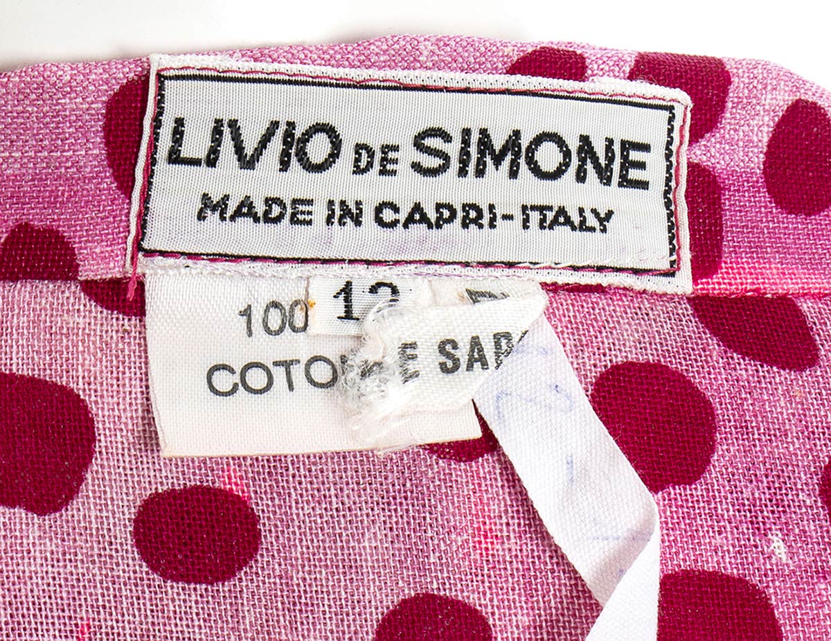 Abito Livio De Simone fine anni 70 in cotone nelle sfumature del rosa, cintura, grado di condizione generale B