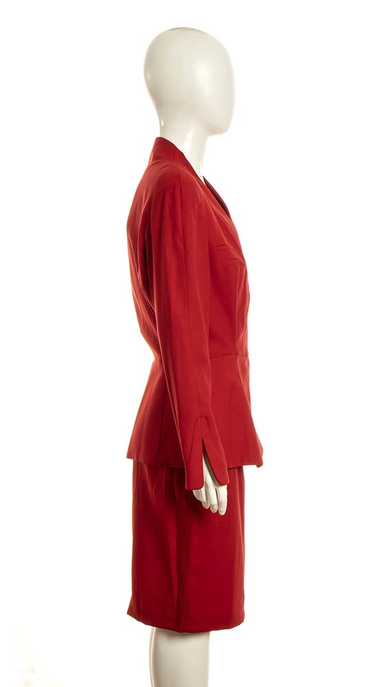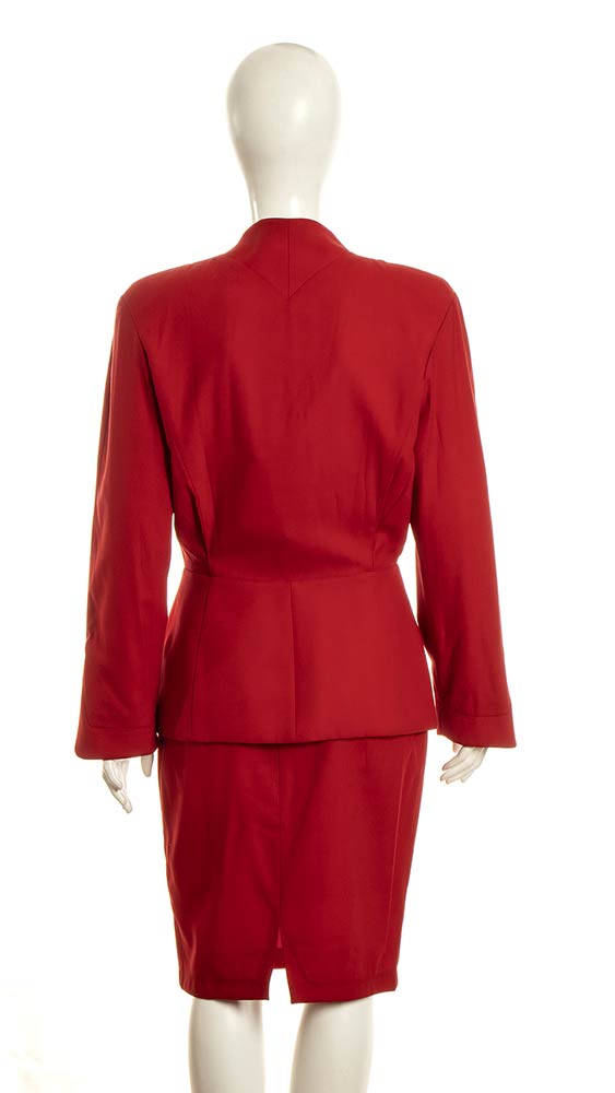 Completo (gonna e giacca) in tessuto misto lana/viscosa rosso brillante