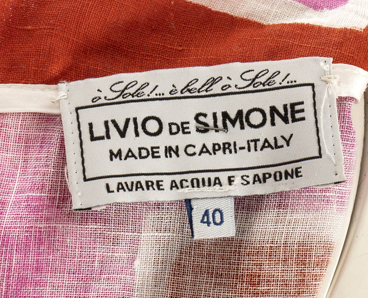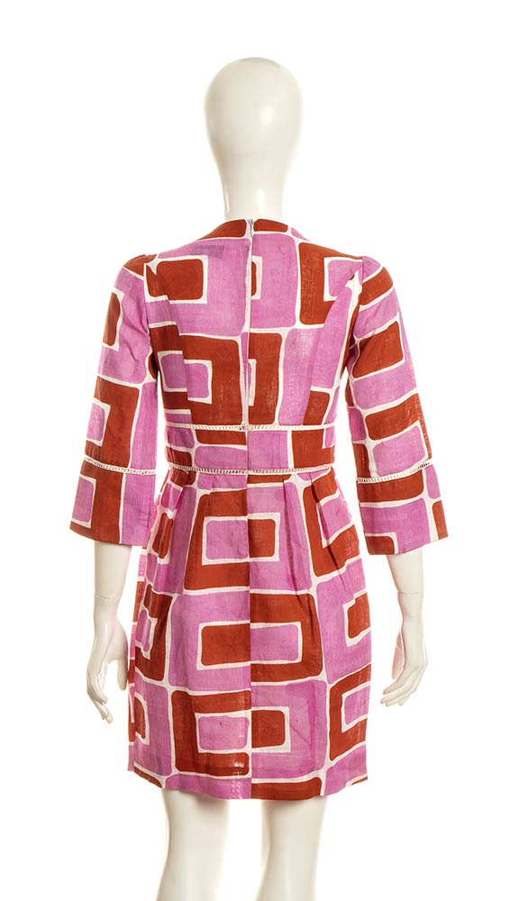 Abito in lino fantasia geometrica nei toni del rosa e rosso