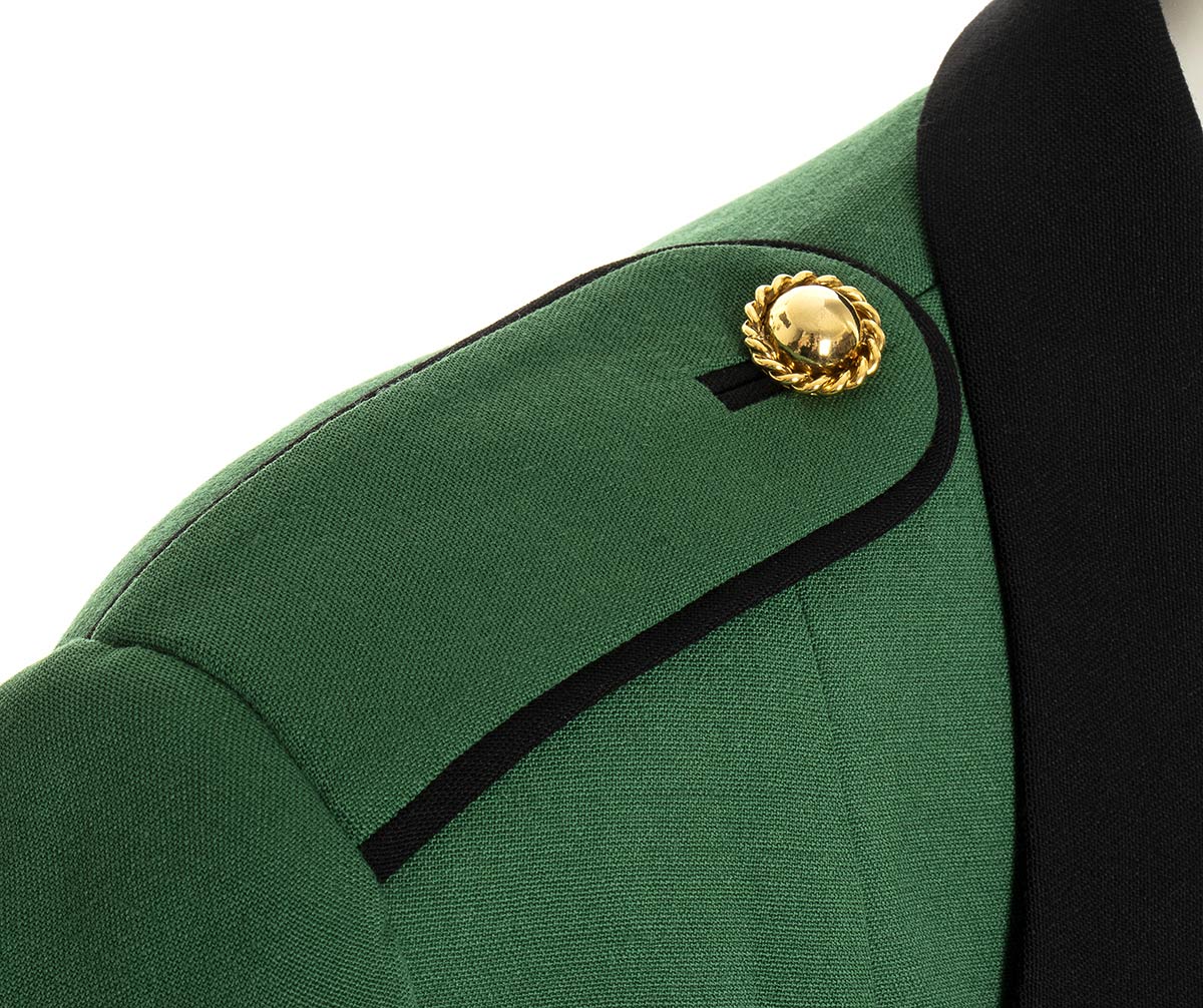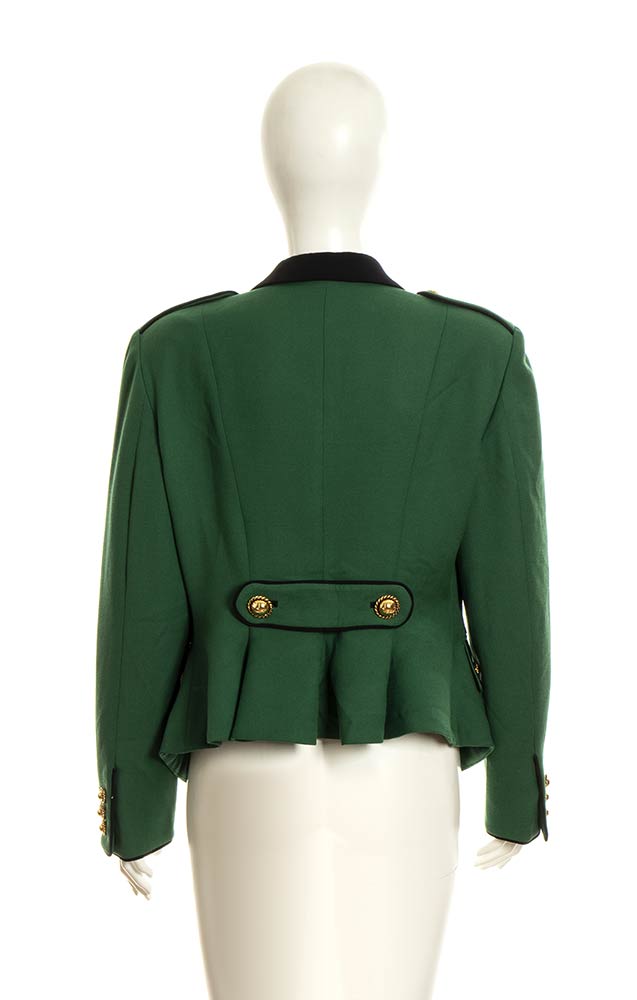 Blazer Moschino Couture autunno inverno 1993-1994 in lana verde e nera, bottoni dorati, grado di condizione generale B