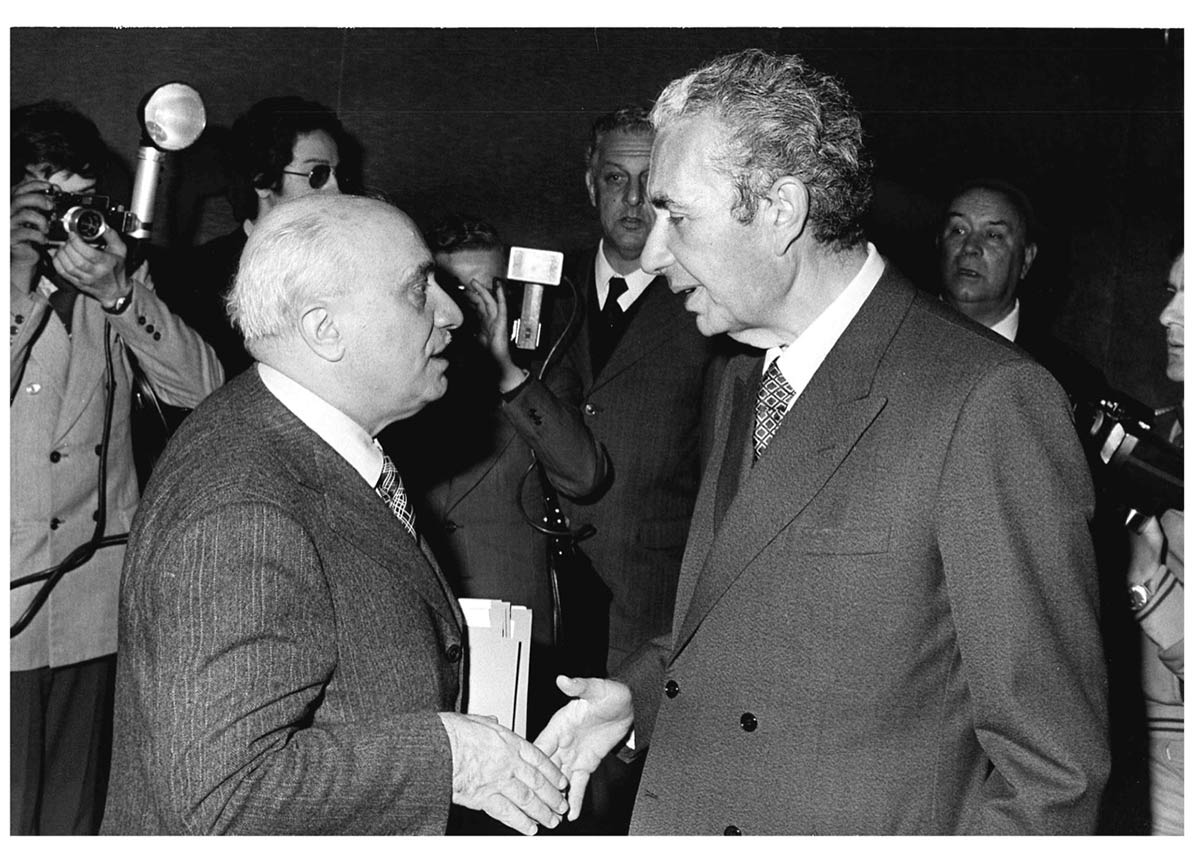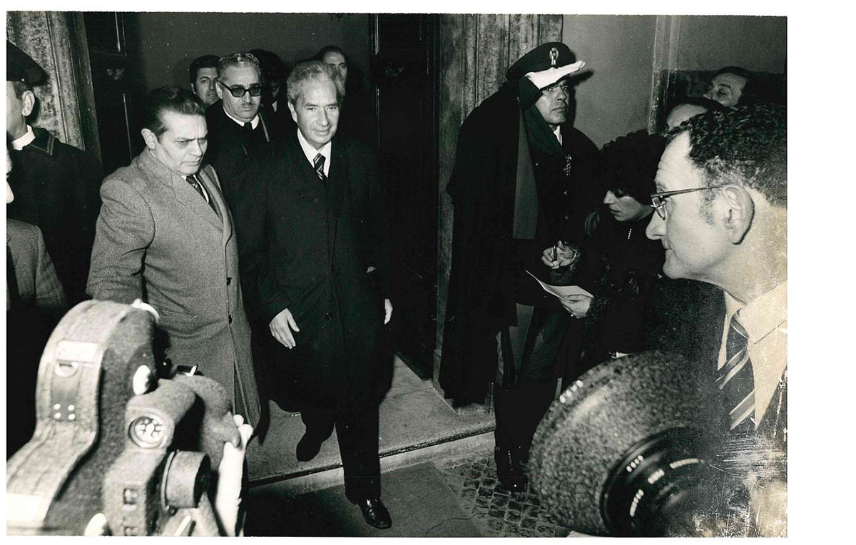 Lotto di 7 fotografie scattate durante gli anni 1963-1976 ritraenti Aldo Moro insieme ad altre personalità politiche italiane dell’epoca, partecipanti a vari incontri e riunioni.