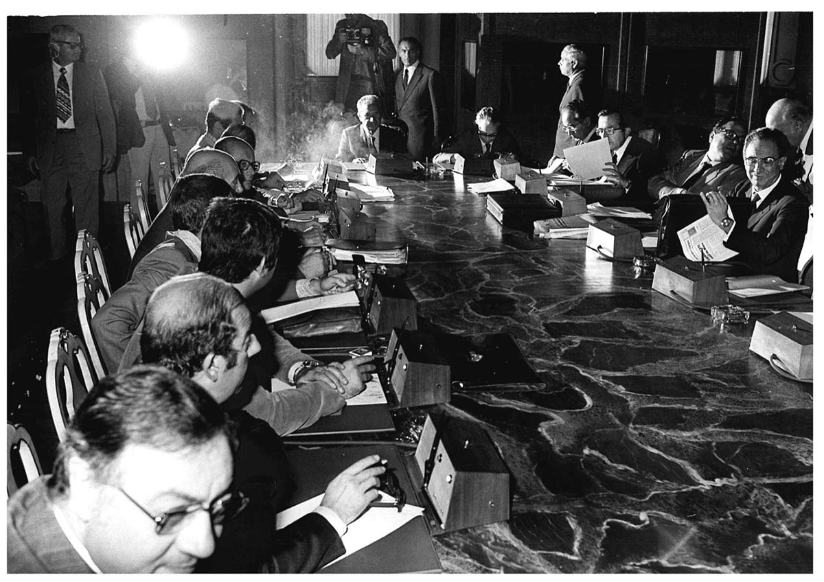 Si riconoscono tra gli altri Ugo La Malfa, Armando Cossutta, Giulio Andreotti, Arnaldo Forlani, Luciano Lama.