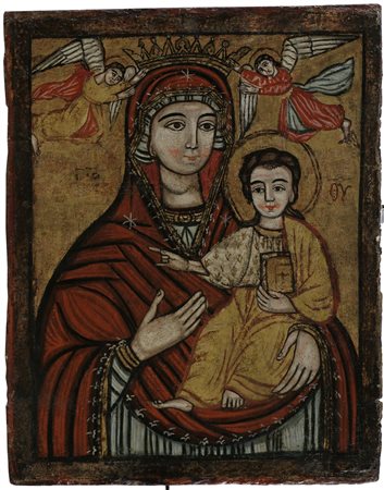 MAESTRO VENETO CRETESE Madonna e bambino. Tempera su tavola. Cm 33,00 x 42,00 x 4,00.