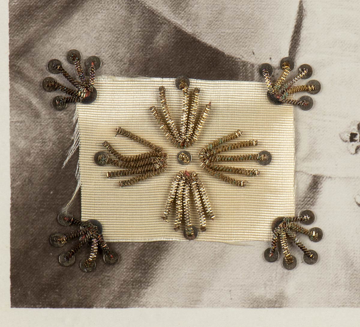 Foto del Beato Papa Pio X con reliquia incorniciata, EX INDUMENTIS, piccolo frammento della sua veste papale bianca, con parte di ricami in canutiglia dorata. La reliquia è certificata dal sigillo in ceralacca, dal cartiglio applicato al retro a garanzia del filo in cotone mai aperto, e dal timbro ad inchiostro che recita POSTULATOR CAUSAE B. PII PP. X - per l'opera di beatificazione del ponteficie. Originale, mai aperto. Misure del quadro cm.27x33. in perfette condizioni.