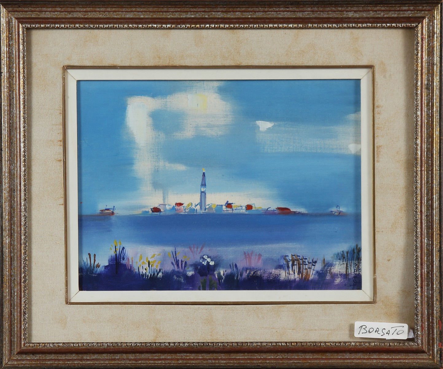 BORSATO RENATO (n. 1927) Senza titolo. Olio su cartone telato. Cm 40,00 x 30,00. Firma in basso a destra. Cornice presente