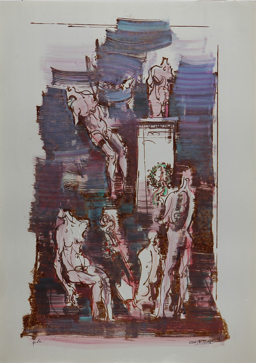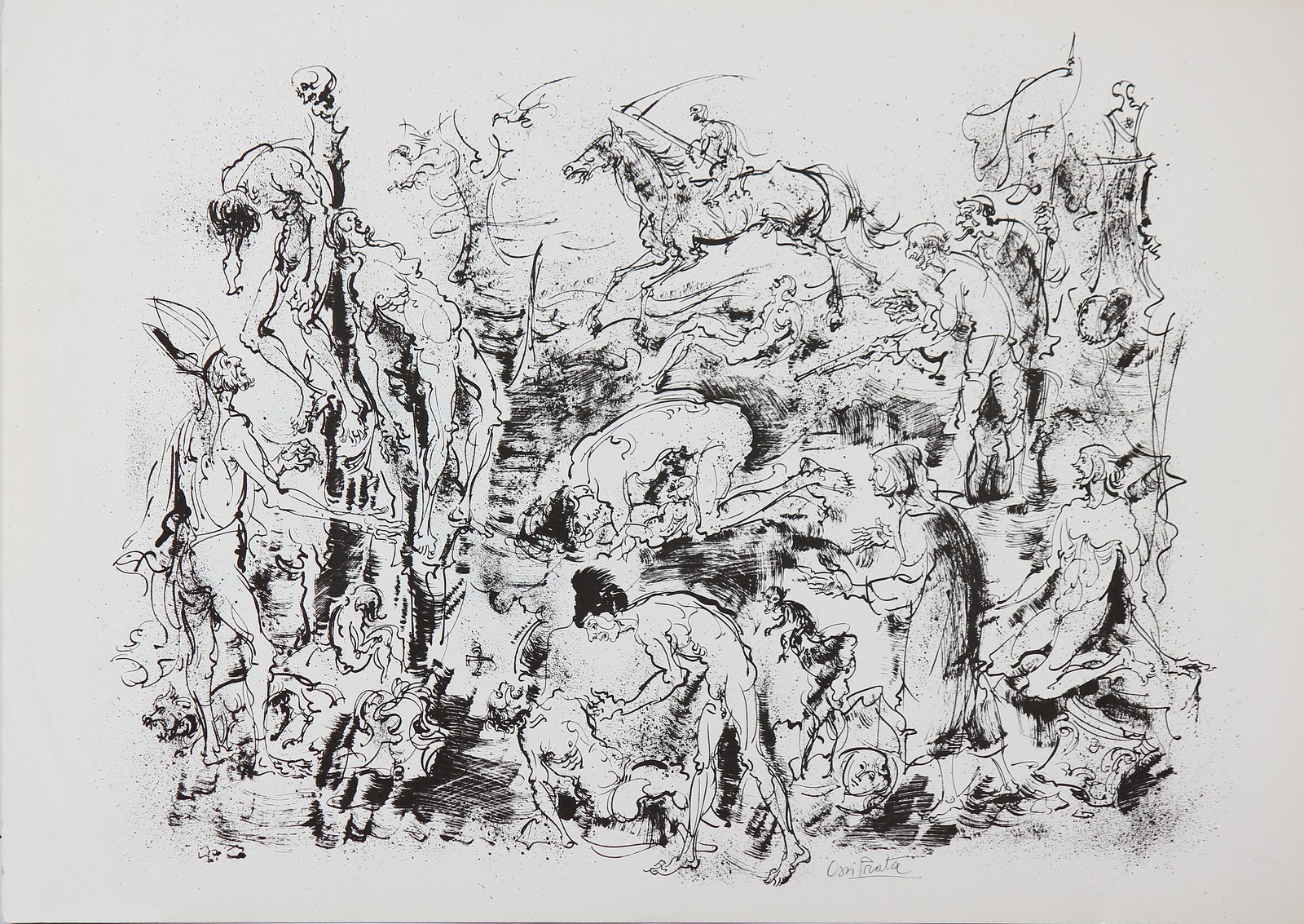 DI PRATA OSCAR (1910 - 2006) Lotto composto da n.4 litografie. Litografia. . 1. Senza titolo, firma in basso a sinistra a matita, misure lastra:46x30cm, misure foglio:64x48cm; 2. Senza titolo, firma a matita in basso, misure lastra:43x60cm, misure foglio:69x49cm; 3. Senza titolo, P.D.A. e firma in basso a pennarello, misure disegno:61x39cm, misure foglio:69x49cm; 4. Senza titolo, misure lastra:37x58cm, misure foglio:70x50cm, piccoli strappi nella carta in basso. La litografia n.4 appartiene alla cartella Pietà per l'uomo composta da n.6 litografie realizzata nell'anno 1975 ed è pubblicata sull'opuscolo Pietà per l'uomo, Omaggio a Oscar di Prata, realizzato dall'Associazione abitanti Contrada di Cerezzata, 1998.