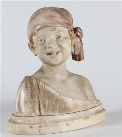 STIACCINI UMBERTO Bimba. 1926. Marmo. Cm 32,00 x 36,00 x 18,00. Firma e data al retro alla base.