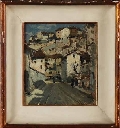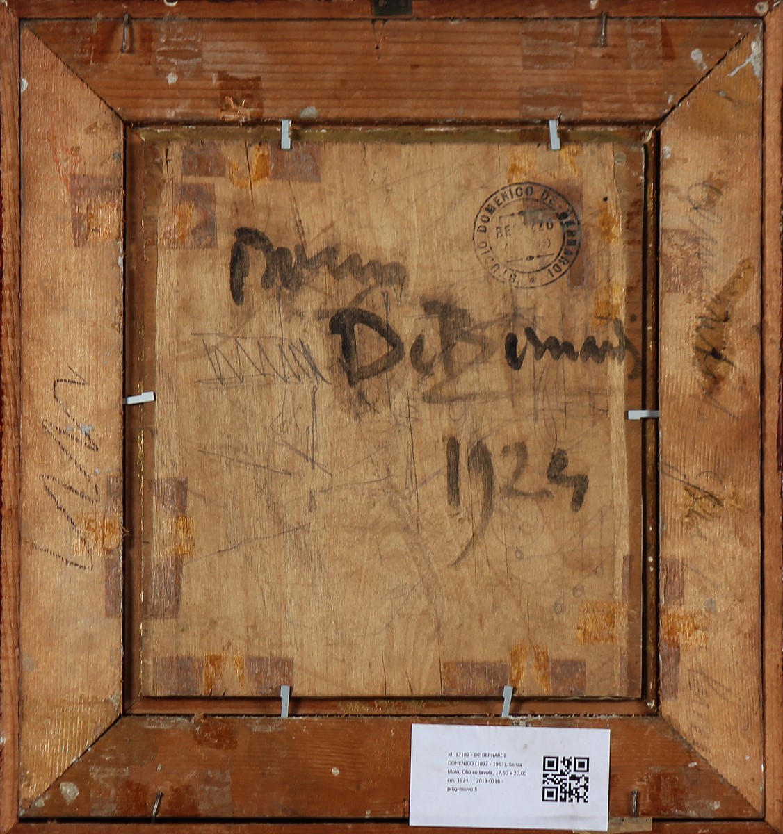 DE BERNARDI DOMENICO (1892 - 1963) Senza titolo. 1924. Olio su tavola. Cm 17,50 x 20,00. Firma e anno in basso a destra. Firma, anno e timbro dell'artista al retro. Cornice presente