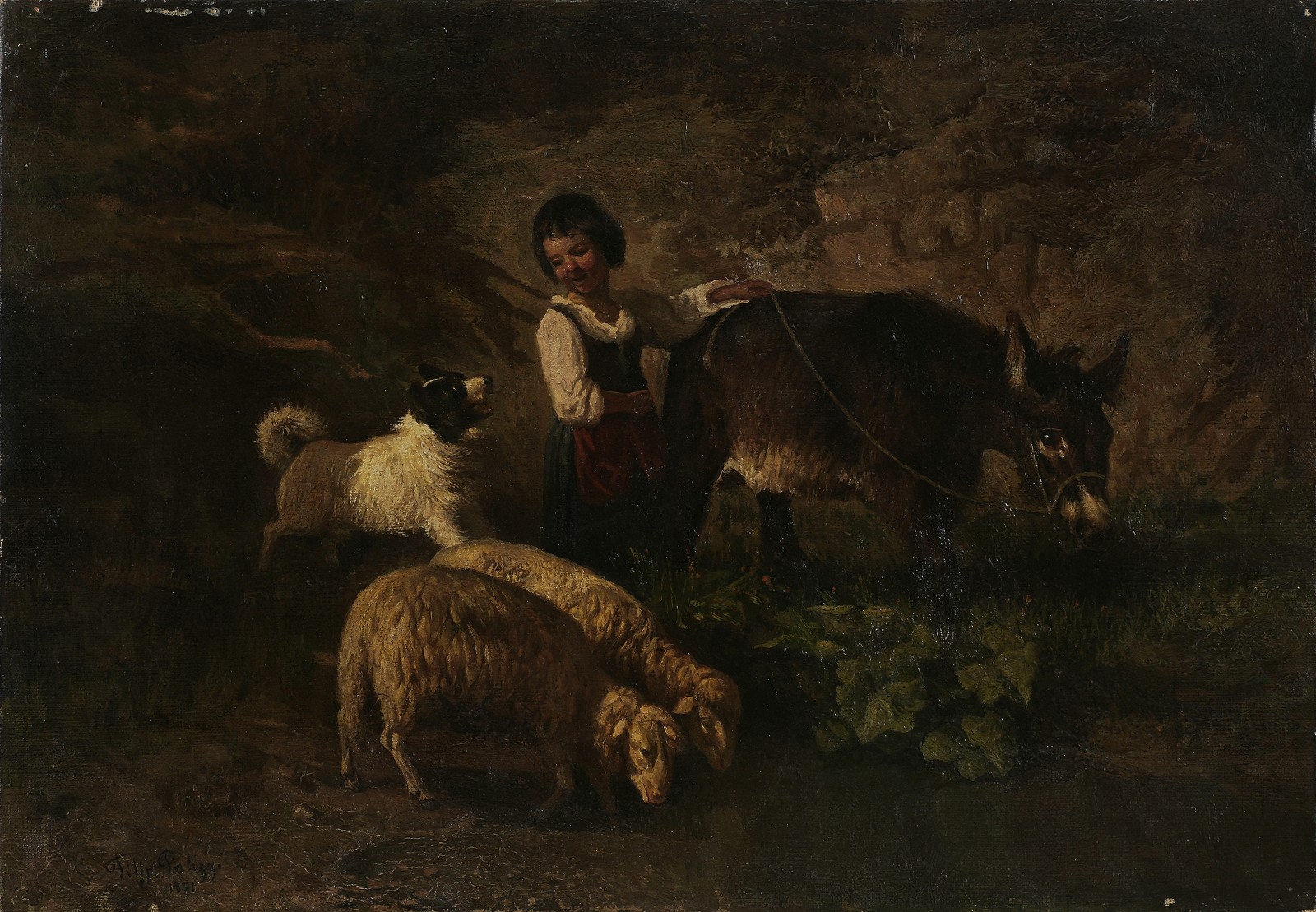 ANONIMO Scena campestre con fanciulla e armenti. 1951. Olio su tela . Cm 50,00 x 35,00. A firma Filippo Palizzi e data in basso a sinistra. Piccole mancanze di colore in alto a sinistra.