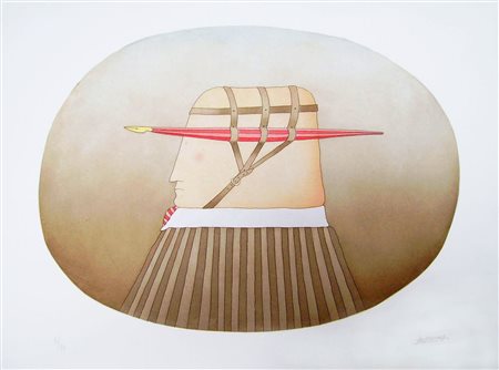 BESTETTI PIETRO (n. 1943) Senza titolo. Litografia. Cm 70,00 x 50,00. Misure lastra: 41x58,8 cm.Tir. 14/99 in basso a sinistra a matita. Firma in basso a destra a matita.