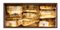 Asseblage di carte piegate e colorate entro box di legno e vetro