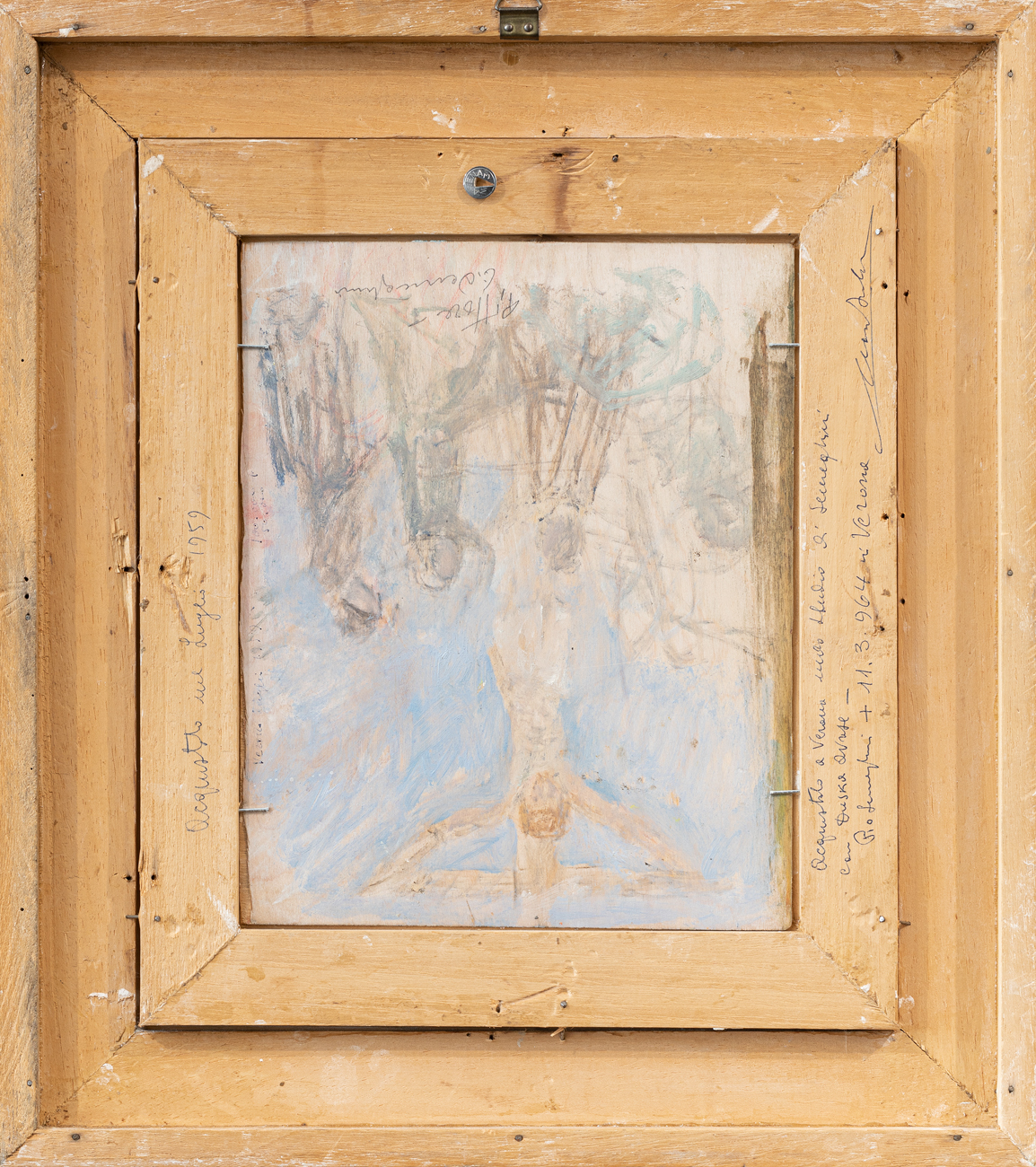 Iscrizione 'Acquistato a Verona nello studio di Semeghini con Duska Avrese' a firma indecifrata al retro della cornice