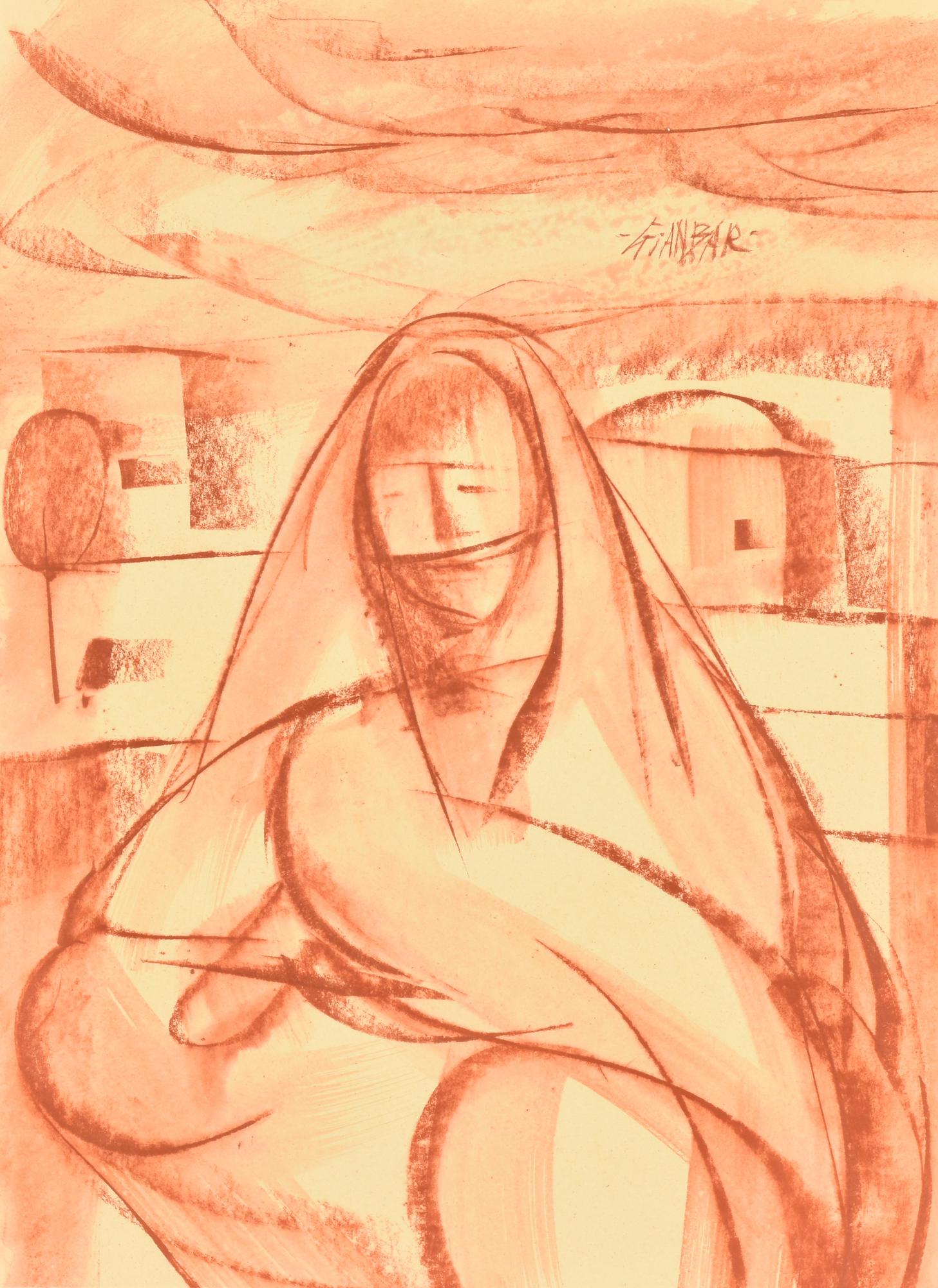 GIANBAR (Gianni Baretta) DONNA ARABA tecnica mista su cartoncino, cm 42,5x32...