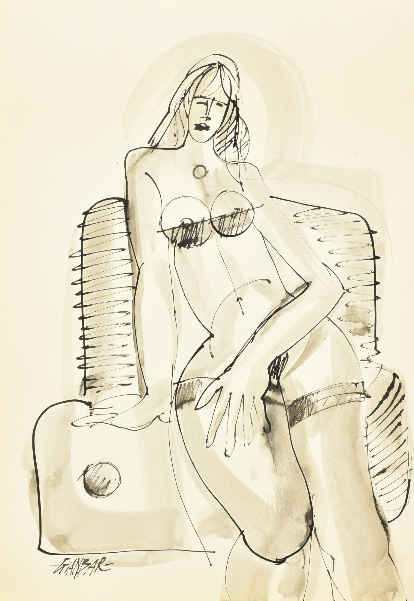 GIANBAR (Gianni Baretta) DONNA CON MELA china acquarellata su carta, cm 50x35...