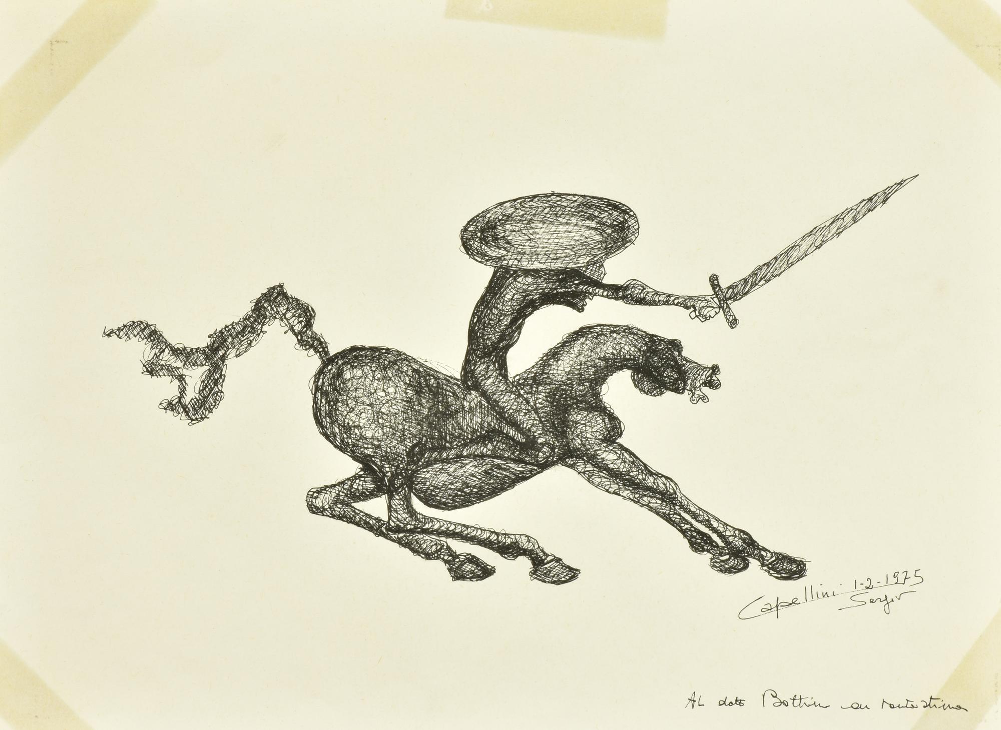 Sergio Capellini L'ATTACCO DEL CAVALIERE china su carta, cm 21x29,5 firma,...
