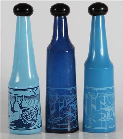 DALI' SALVADOR (1904 - 1989) Lotto composto da n. 3 bottiglie. 1970. Vetro serigrafato. Cm 8,00 x 33,50. Le bottiglie sono fornite di tappo in plastica dura. Firma e numero della bottiglia serigrafati in basso.