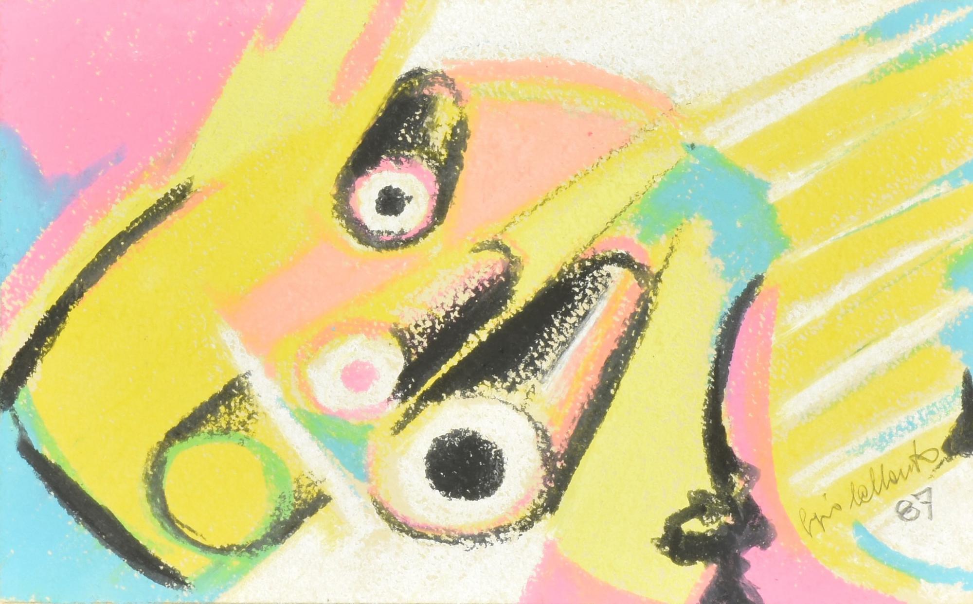 Ignoto COMPOSIZIONE ASTRATTA pastelli a cera su tavola applicata a...
