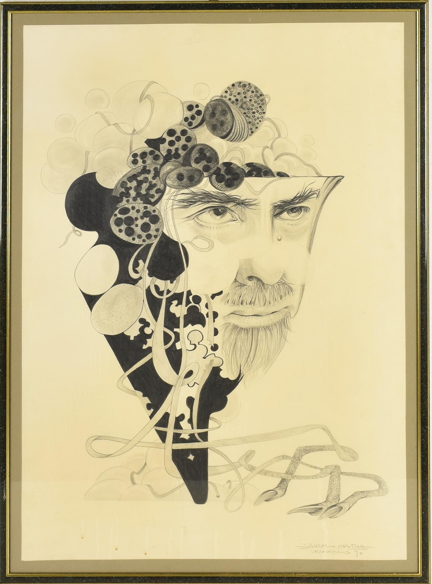 Angelo Maria Venturino VOLTO MASCHILE tecnica mista su carta, cm 72x50 firma...